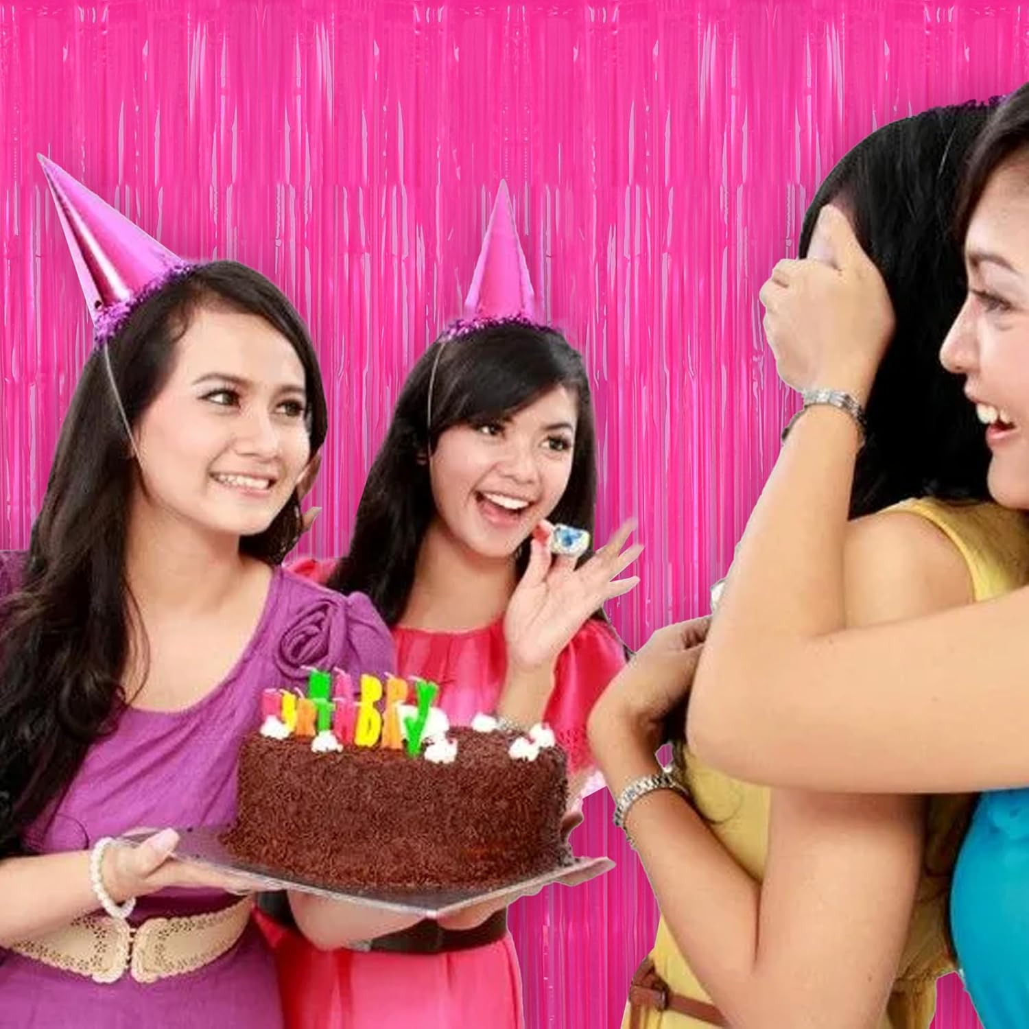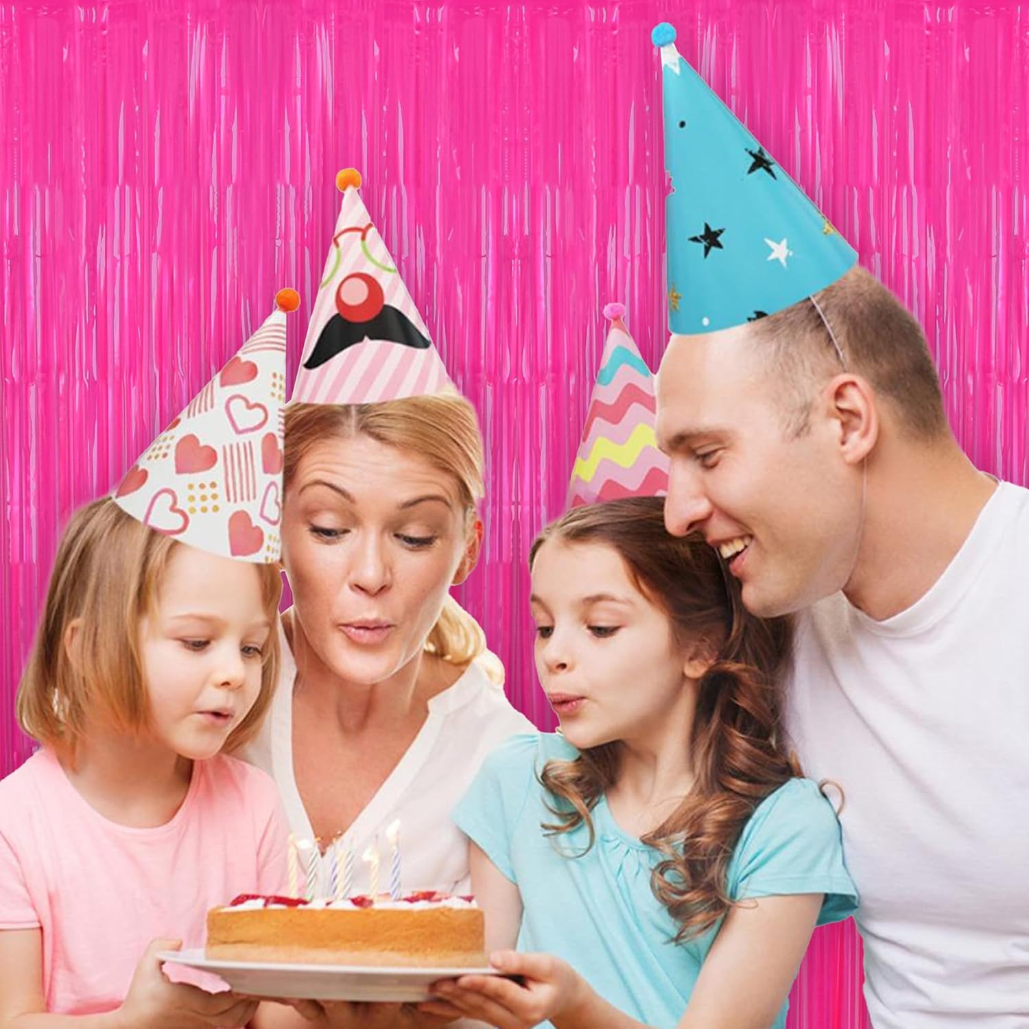 BEISHIDA 2Pcs Hot Pink Door Streamer Fluorescent Hot Pink Backdrop Blue Foil Fringe Curtains Tinsel for Birthday Baby Shower Backdrop Wedding Party Decoration (3.28 ft x 6.56 ft)