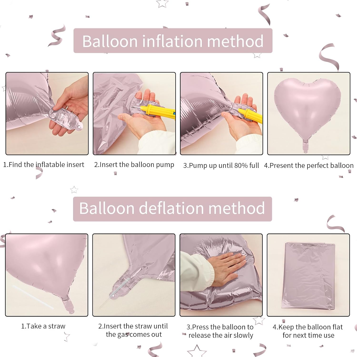 - Easy To Use: These light pink and blue heart heart shaped birthday balloons can be filled with air or helium (inflate to 85%-90%, to prevent it from becoming too large and exploding). The valve seals automatically when inflated, and the gas inside can be emptied with a plastic straw, making them reusable. The set also comes with 10 meters of ribbon, making it easy to decorate your room for your children and spouse.