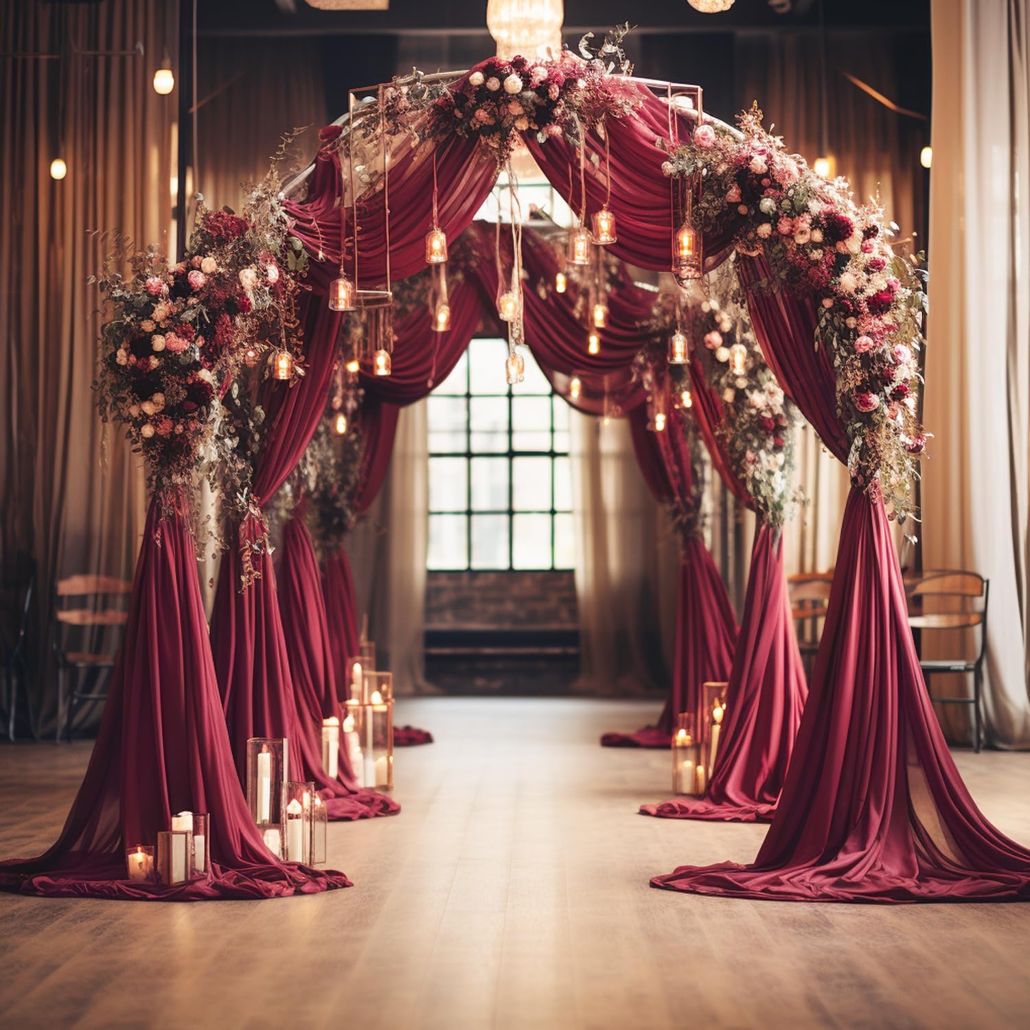 - 【Soft Wedding Drapes】Sheer drapes for wedding arch decor are made of polyester fabric, touch silky soft. These arch draping fabric is lightweight, easy to hang vertically with natural sagging, wrinkle-free, durable and reusable.