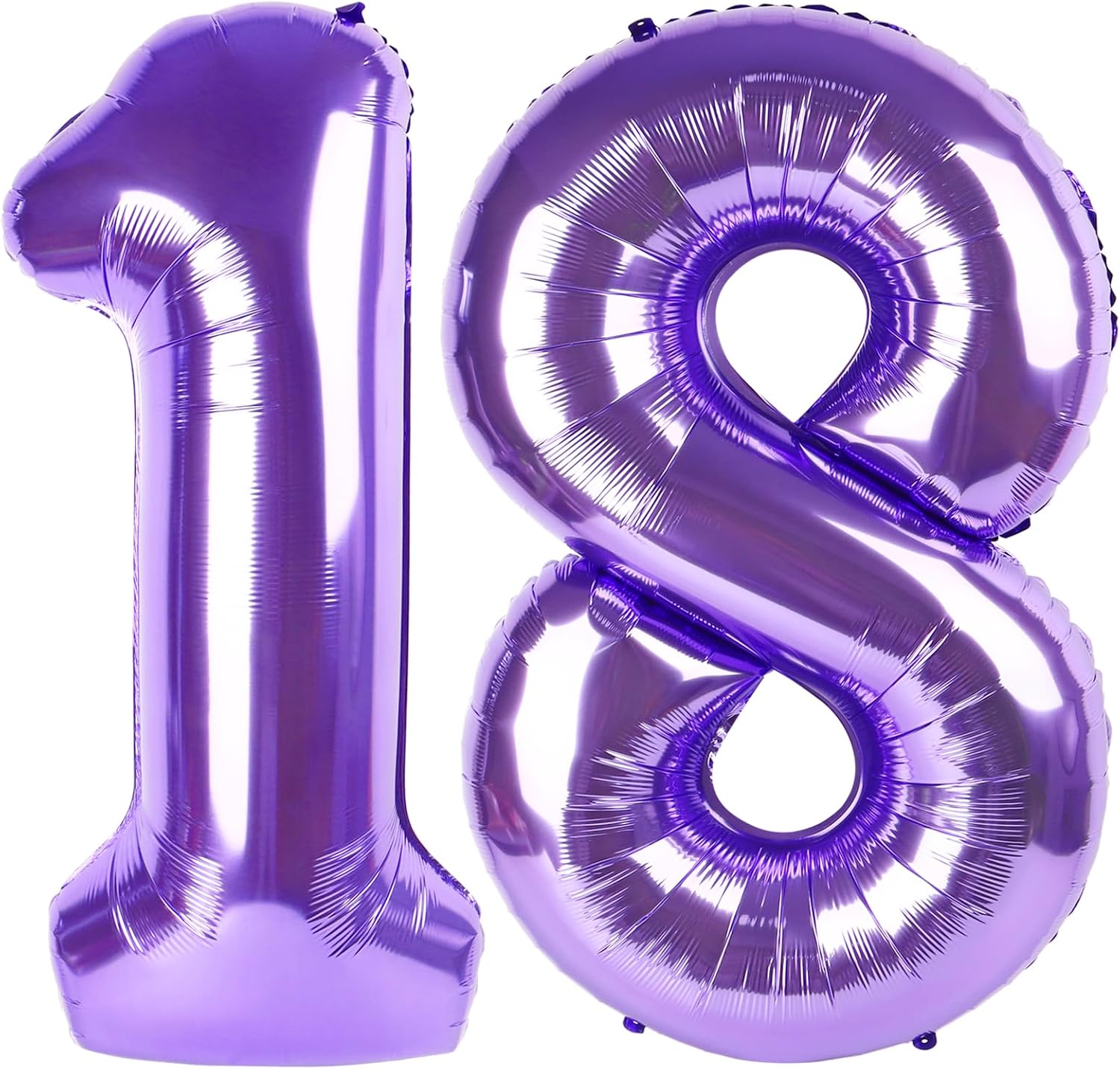 - 3.Versatile 18 Balloon Numbers: Are you still having trouble finding the right purple 18 number birthday balloons for your birthday decorations? Number balloons 40 inch will be the perfect ornament for any theme birthday party, anniversary, wedding, baby shower, graduation, Christmas Halloween, class activities and other special days. For children adults. Number one balloon is a beautiful birthday number balloons and shooting background. You and guests will enjoy a relaxing party time together!
