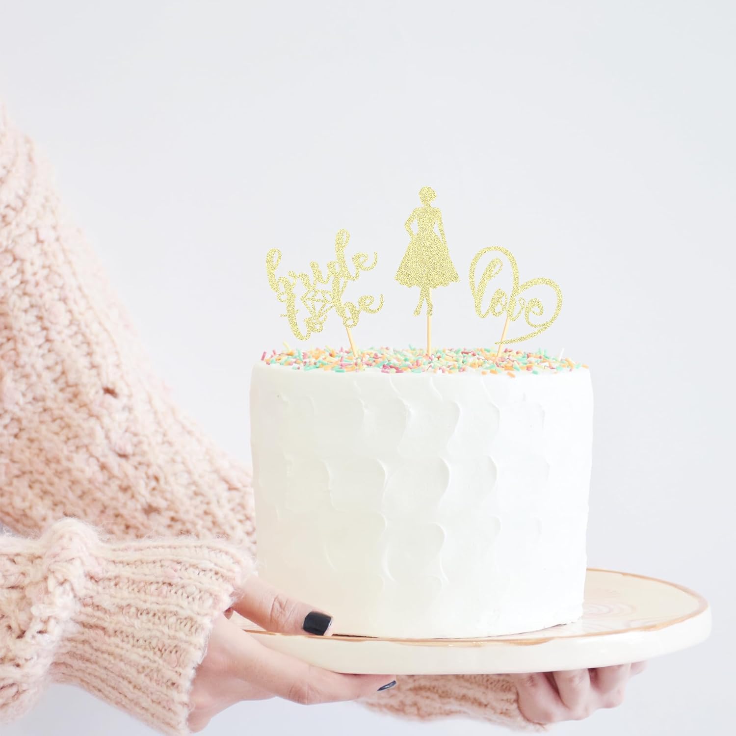 - Package Included: 3PCS gold Glitter Bride to Be Cupcake Toppers add "Ring"sign. Already assembled so you can insert into wedding engagement party decoration, which make your cake icing on the cake. Size: W 2.3 inch * H 4.72 inch / W 6 cm * H 12 cm(Including Stick)