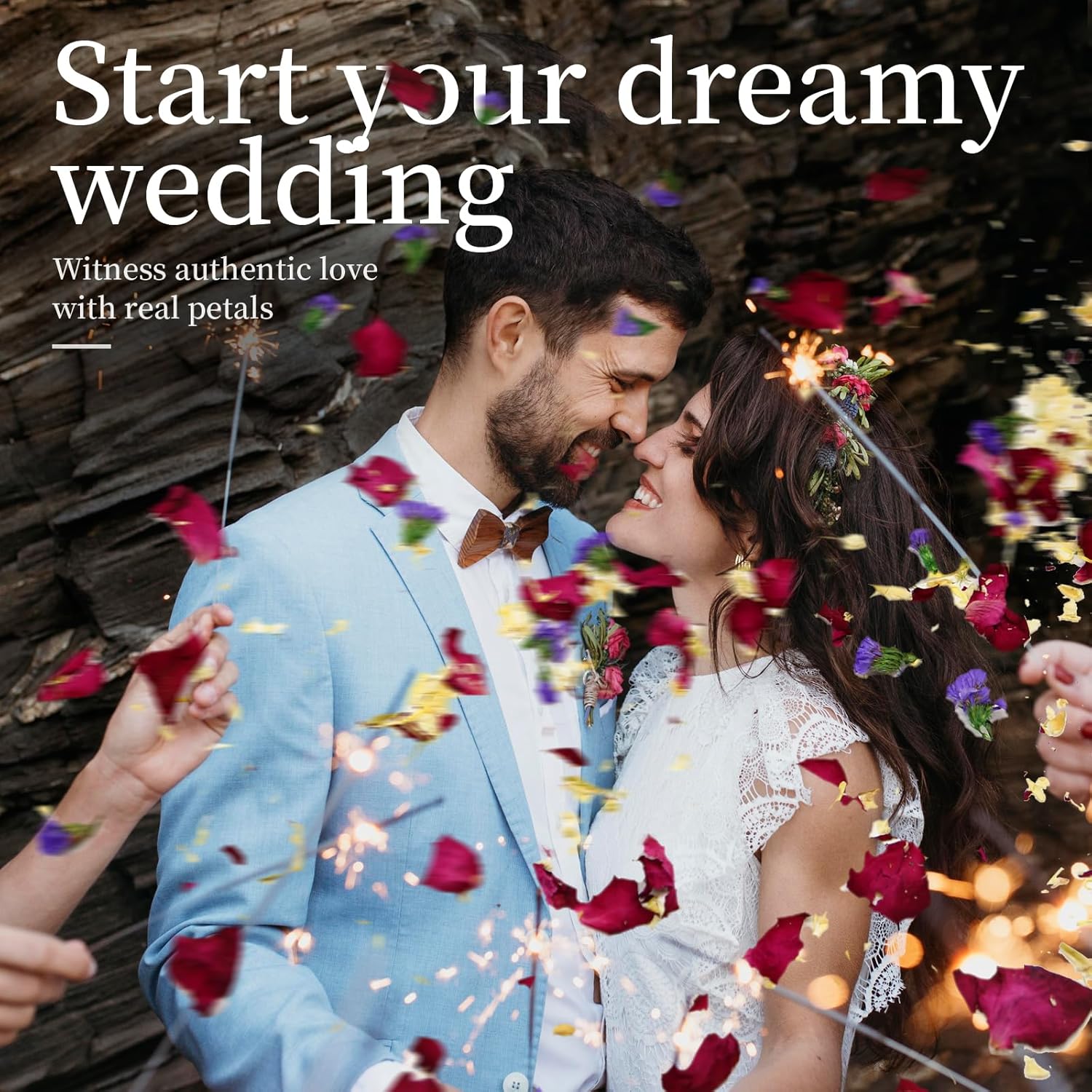 - Add Romantic Moments: One of the most cherished traditions at weddings is the joyful throwing of confetti or flower petals to celebrate the newlyweds. With our all-natural, dried flower confetti, you can add a burst of color to your Wedding Album, TikTok, Facebook, and Instagram feed. Every picture tells a story, let yours be vibrant, joyful, and eco-friendly