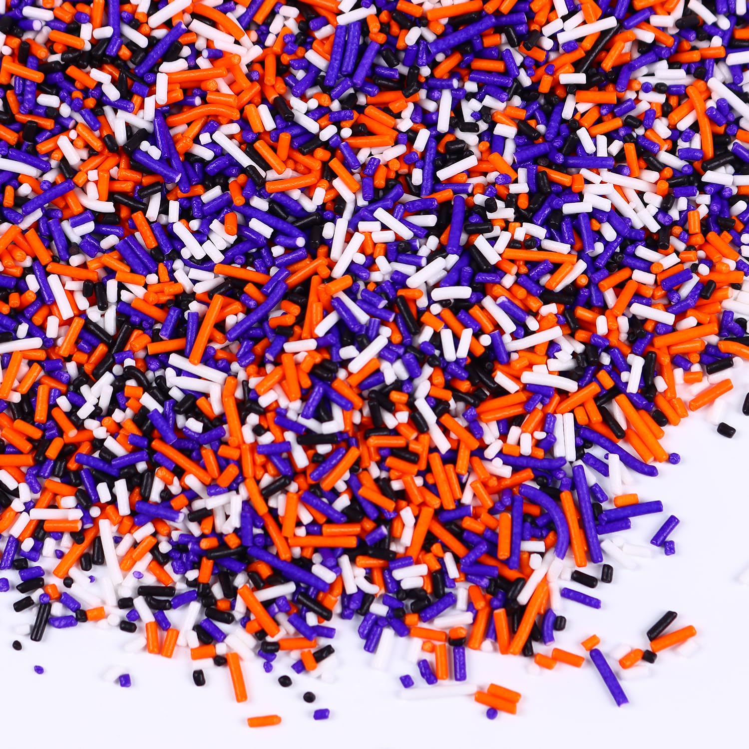 Edible Halloween Jimmies Sprinkles, Halloween Sprinkles, White, Purple, Orange, and Black sprinkles, Jimmy for Decorating, Perfect for Cake, Cupcake, Macaron, Baking, Ice cream, and Cookies(120g/4.23 oz)