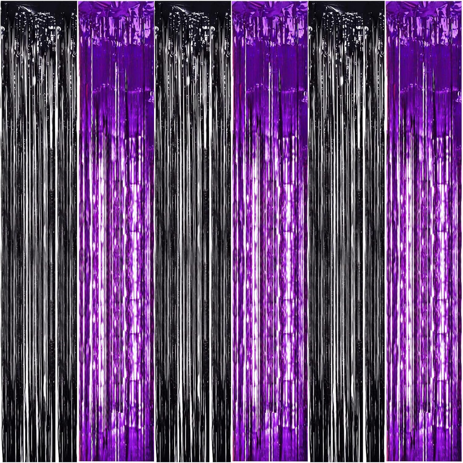 TONIFUL 2Pcs Black Purple Door Streamers,Photo Booth Backdrop Metallic Streamers Foil Fringe Curtains for Birthday Christmas New Year Bachelorette Halloween Party Streamers Decor