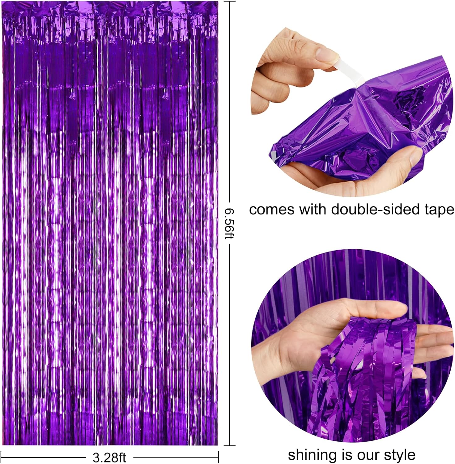 - PACKAGE CONTENTS: 2 x foil curtains: Big size (wide x drop):3.3 x 6.6 feet,6.6ft x 6.6ft in total. Brightly colored quality party decoration photography curtains will surely make your party more fun.