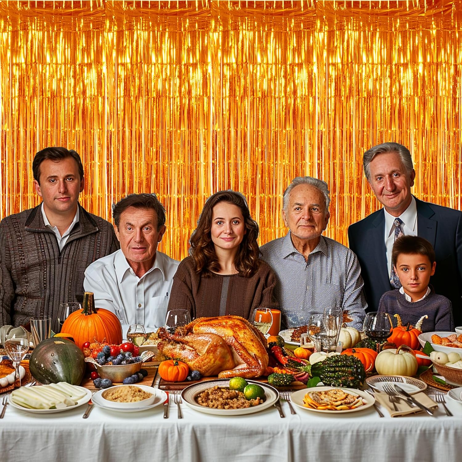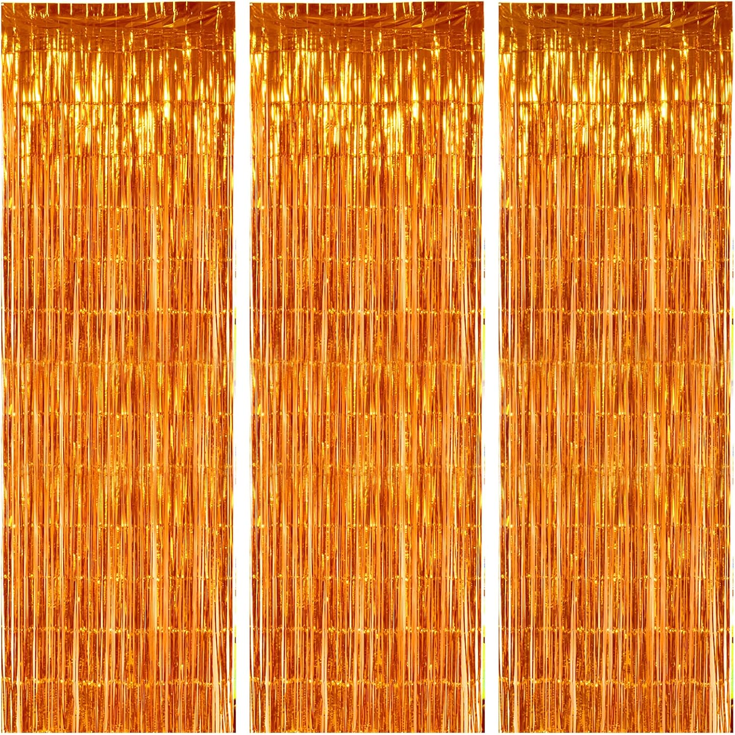TONIFUL 3Pcs Orange Door Streamers,Photo Booth Backdrop Metallic Streamers Foil Fringe Curtains for Halloween Thanksgiving New Year Bachelorette Birthday Party Streamers Decor(9.9ft x 6.6ft)