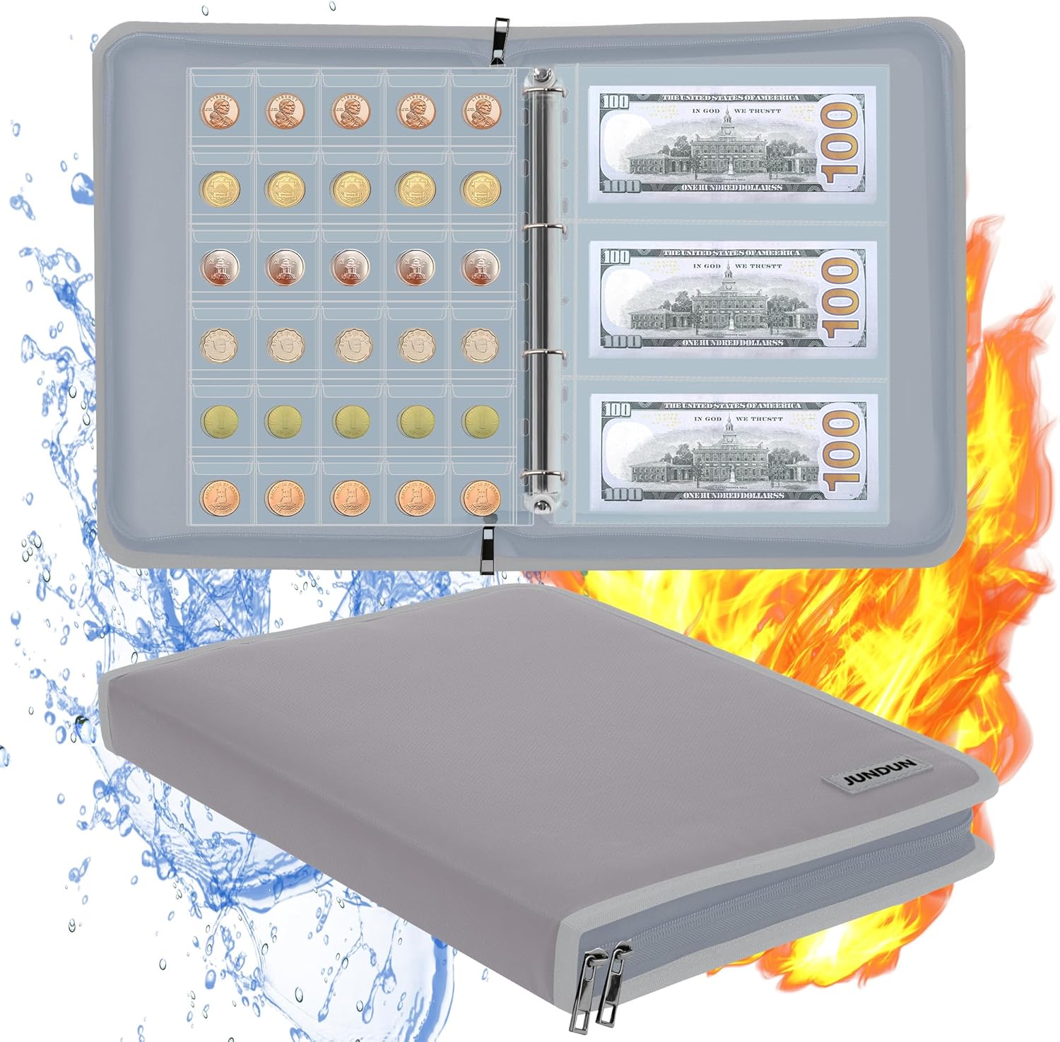- Fireproof Safe Protection :coin albums for collectors is made of silicone coated material which withstands the temperature up to 2000℉ .It will protect your valuables from the damage in case of fire .Coin collection book for collectors gives you enough time to save your valuables from fire.It is highly recommended that coin collection album is combined with fireproof safe.They will offer you the double fireproof safe protection