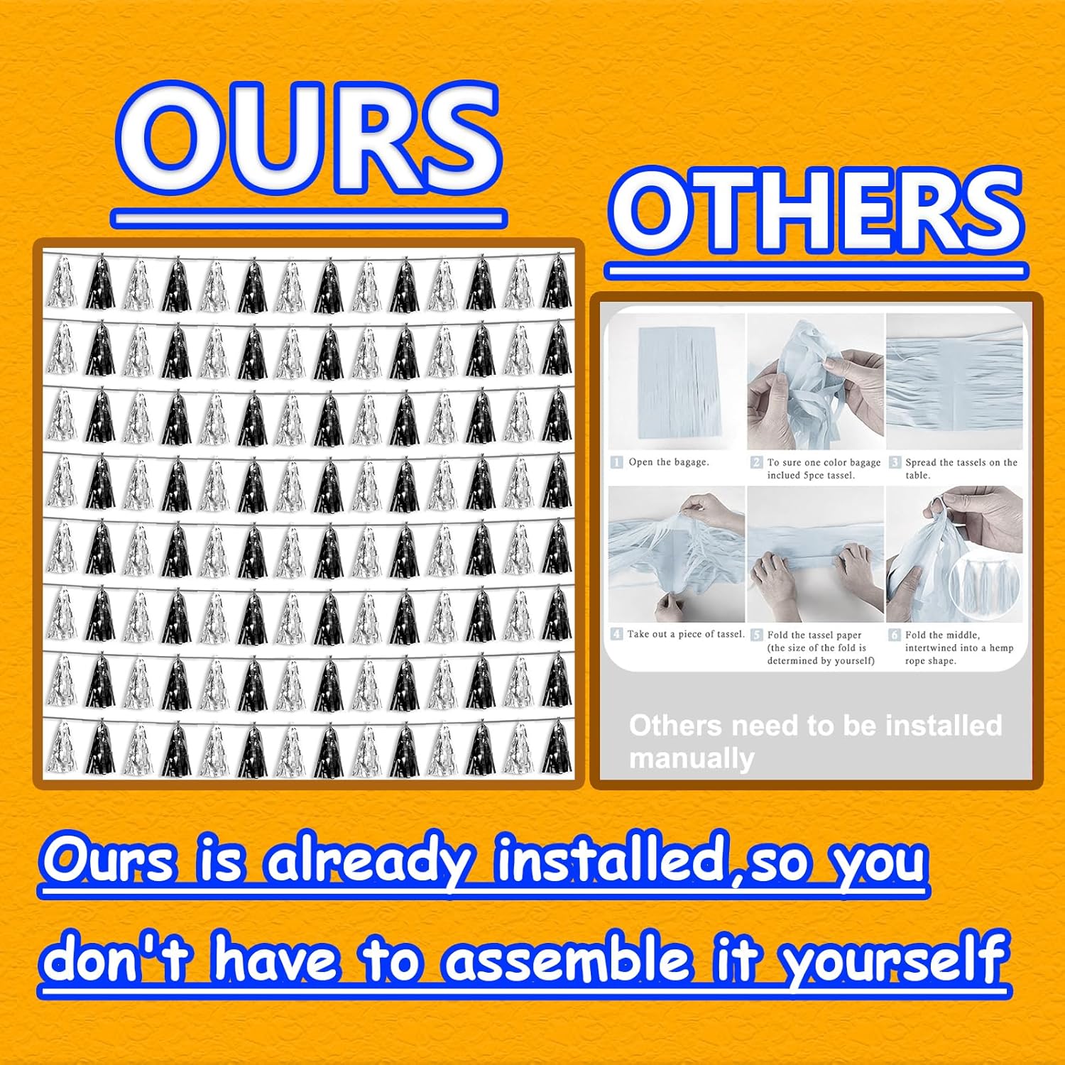- 【Reusable Material】: high-quality metallic foil tassel garlands, with the virtue of nice craftsmanship and lightweight, they are reusable and safe, and not easy to fade; They come with white ribbon for hanging, and garland tassels hang perpendicular to the string, and are adjustable to provide you with the option of spreading the tassels out or piecing them closer together.