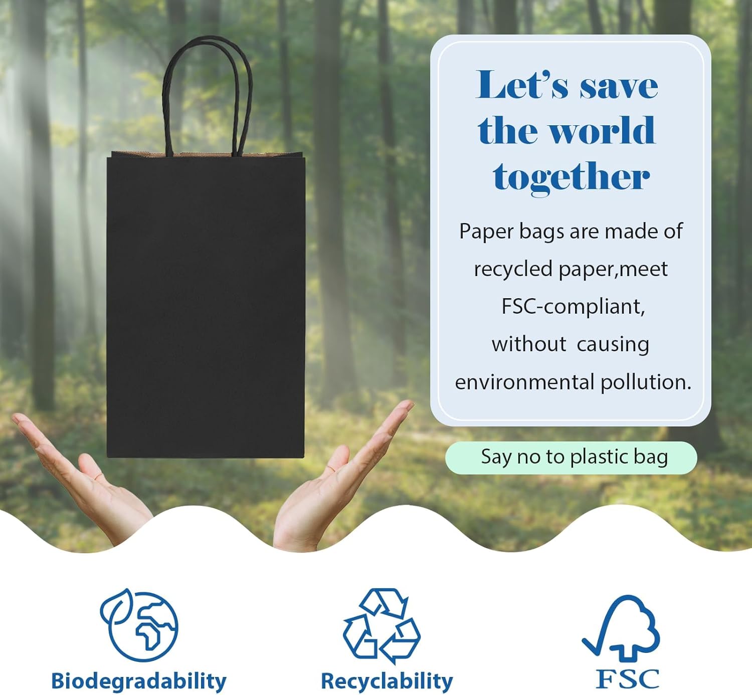 - Black Paper Bags - GSSUSA black paper bags are made of premium recyclable kraft paper. They are durable, and reusable. Great for giving gifts or retail use. Great for packing gifts, groceries, merchandise, or takeout meals. Our black kraft paper bags are recyclable, compostable, and a great alternative to plastic bags.