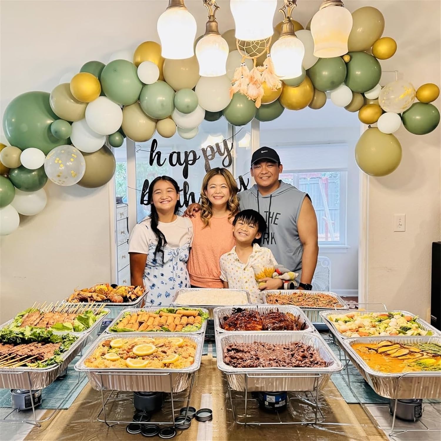 - π Sage Green Balloons Set: This is a beautiful bright balloon, which contains balloons of different colors. Include 12 inch sage green balloon(20pcs), olive green balloon(15pcs), macaron green balloon(10pcs), metallic gold balloon(10pcs), gold confetti balloon(5pcs), 2 rolls of ribbons. You can use these different shades of green balloon kits, DIY balloon combinations to create your birthday party.
