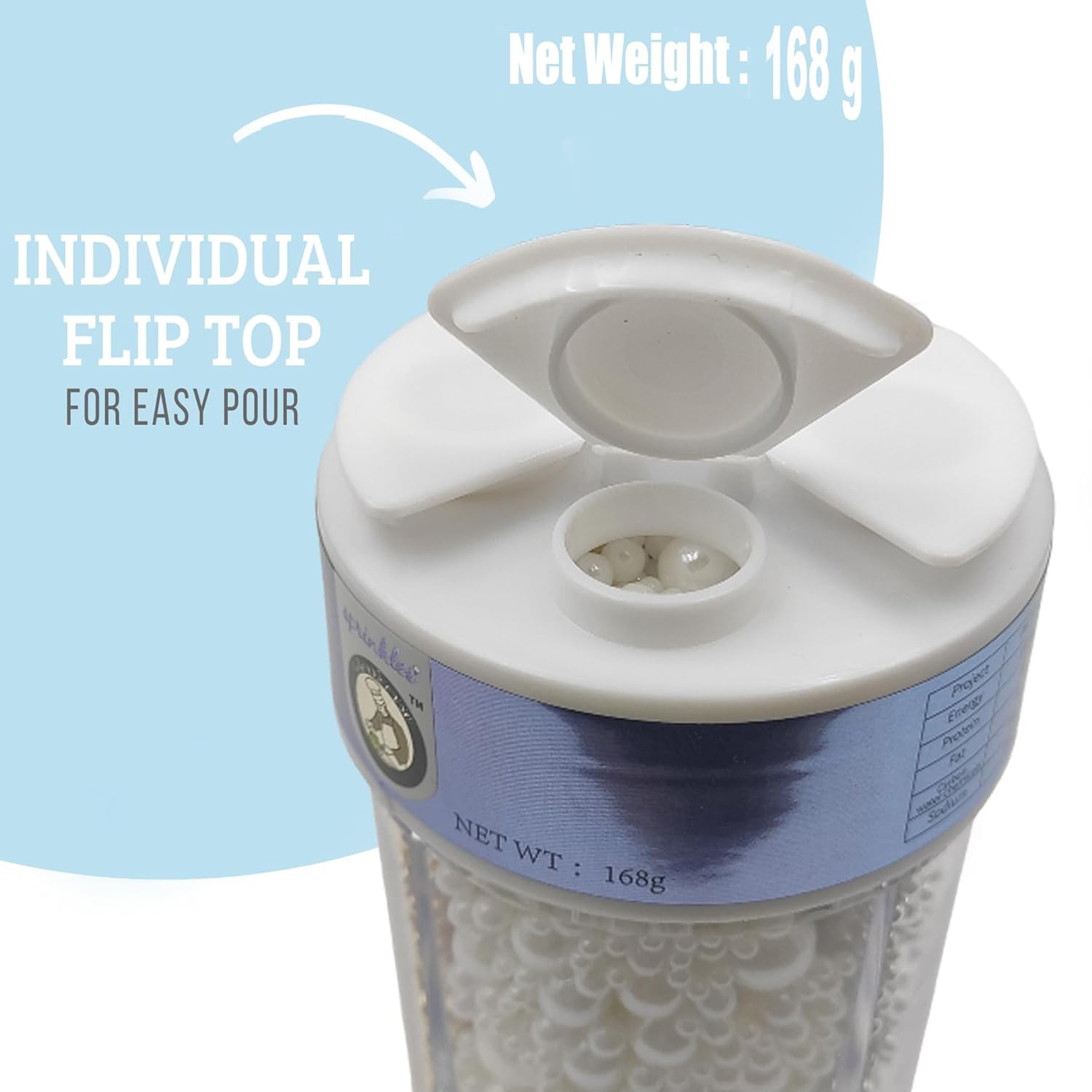 - Convenient Packaging: Each pearl size is stored in its own sealed compartment with a flip-top lid, making them easy to access and use without mess.