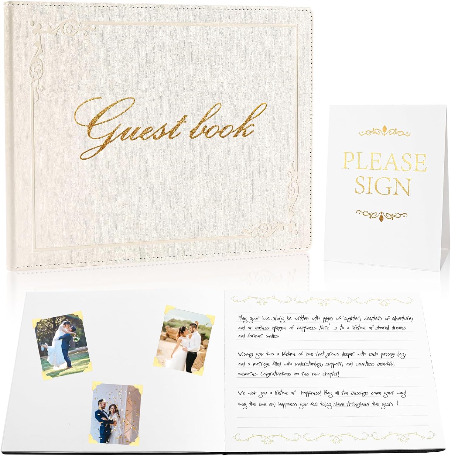 - PRECIOUS SOUVENIR: On your most important day, wedding guest book will become precious memory for the rest of your life. It is not only an important tool for record keeping, but also collection full of warmth and love. Whether the personalized guest book wedding is signed by with guests' signature blessings or pasted with Polaroid photos, each page carry that eternal romance and joy, so that you can keep reliving that happiness and touching in the years to come