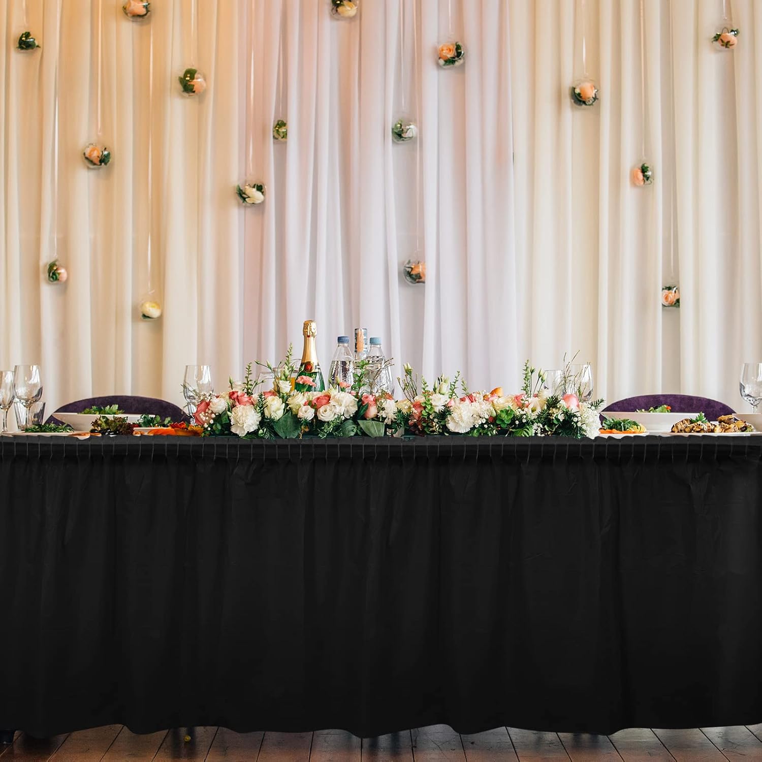TURSTIN 2 Pieces Black Plastic Table Skirts 14 x 29 Feet for Rectangle Tables Fitted Tablecloth Disposable Table Cover for Birthday Party, Events, Banquette Baby Shower
