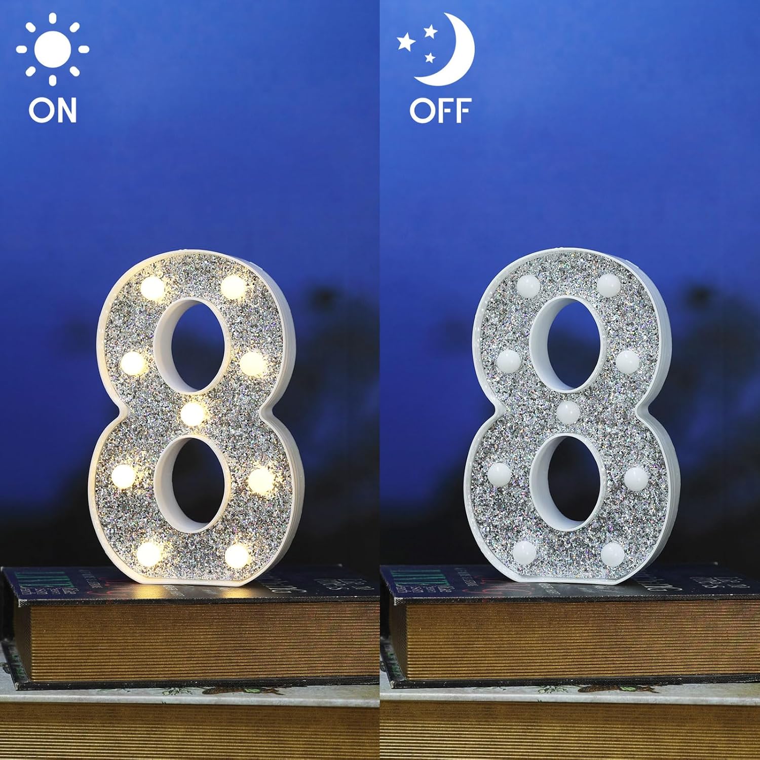 Glitter Light Up Signs, Marquee Light Letters for Table Decorations, Featuring Alphabet & Number Lighted Letters, Number 8 for Prom, Events, or Engagement Party Decor