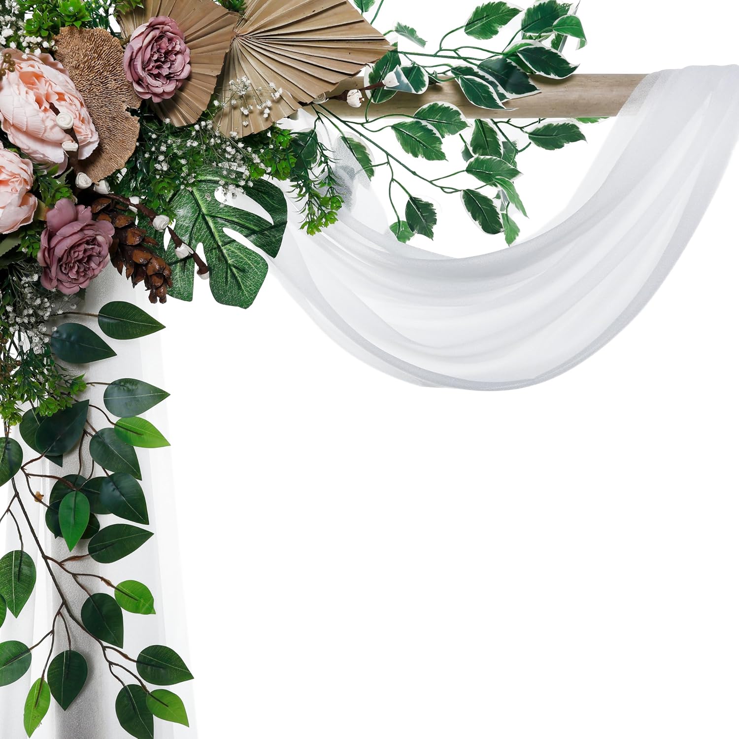 VDS Pack of 1 Panel (30 Inch X 40 Feet) Wedding Arch Draping Fabric Sheer Chiffon Fabric Drapery for Wedding Ceremony Reception Swag Backdrop Canopy Chuppah ARBO Altars Decoration (White)