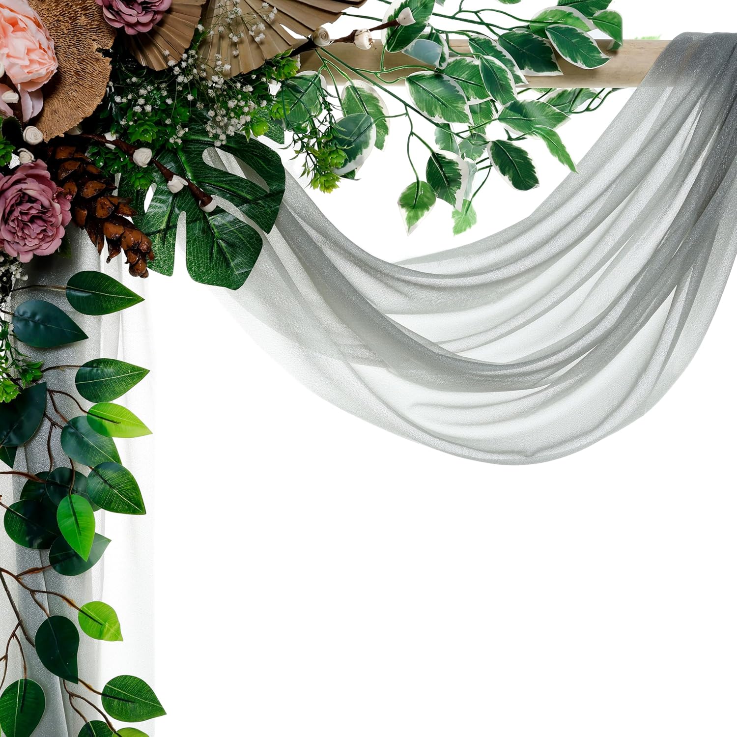 VDS Pack of 1 Panel (30 Inch X 40 Feet) Wedding Arch Draping Fabric Sheer Chiffon Fabric Drapery for Wedding Ceremony Reception Swag Backdrop Canopy Chuppah ARBO Altars Decoration (Grey)
