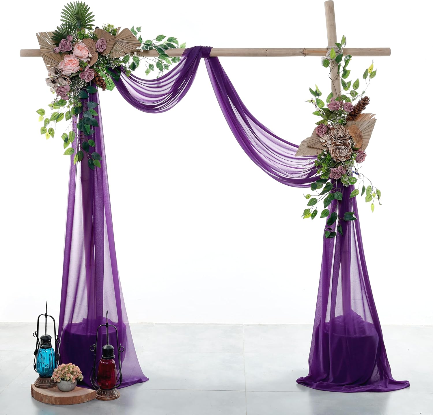 VDS Pack of 1 Panel (30 Inch X 100 Feet) Wedding Arch Draping Fabric Sheer Chiffon Fabric Drapery for Wedding Ceremony Reception Swag Backdrop Canopy Chuppah ARBO Altars Decoration (Purple)