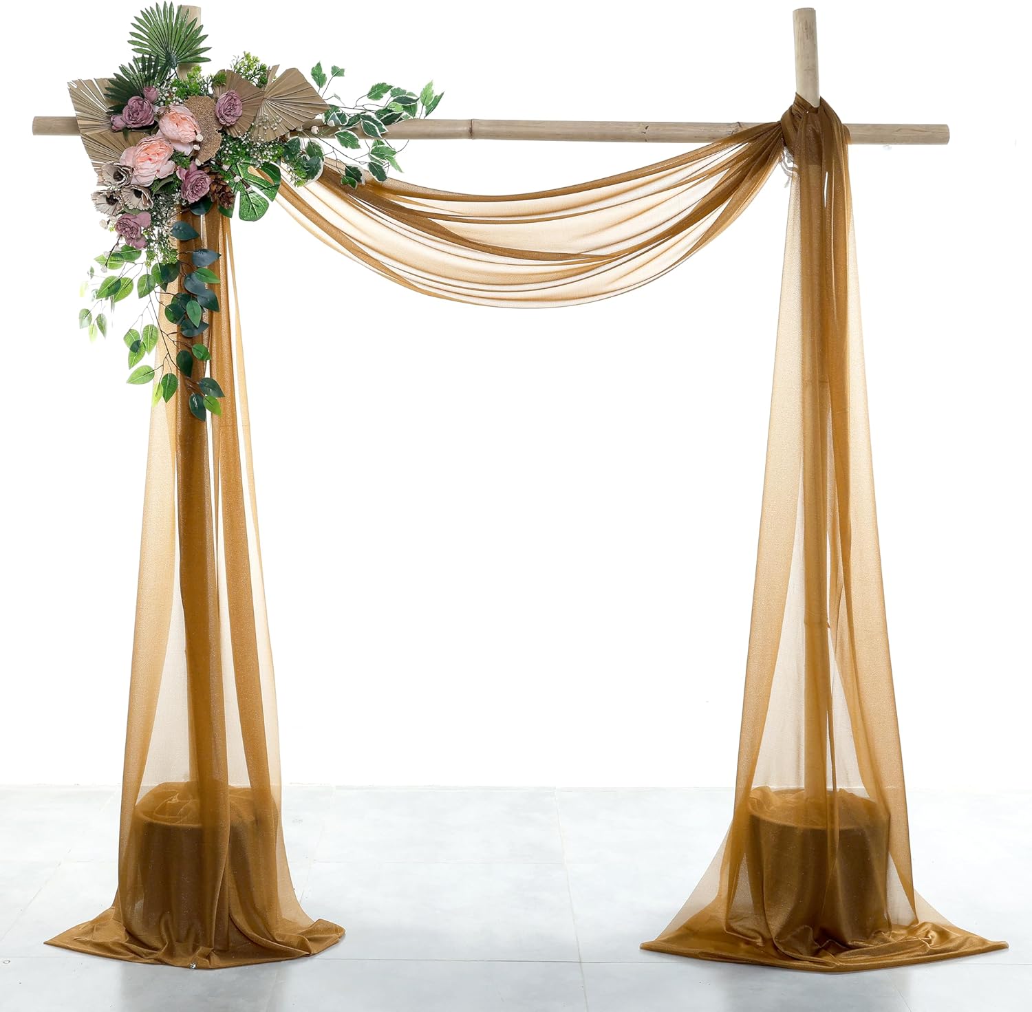 VDS Pack of 1 Panel (30 Inch X 50 Feet) Wedding Arch Draping Fabric Sheer Chiffon Fabric Drapery for Wedding Ceremony Reception Swag Backdrop Canopy Chuppah ARBO Altars Decoration (Mocha)