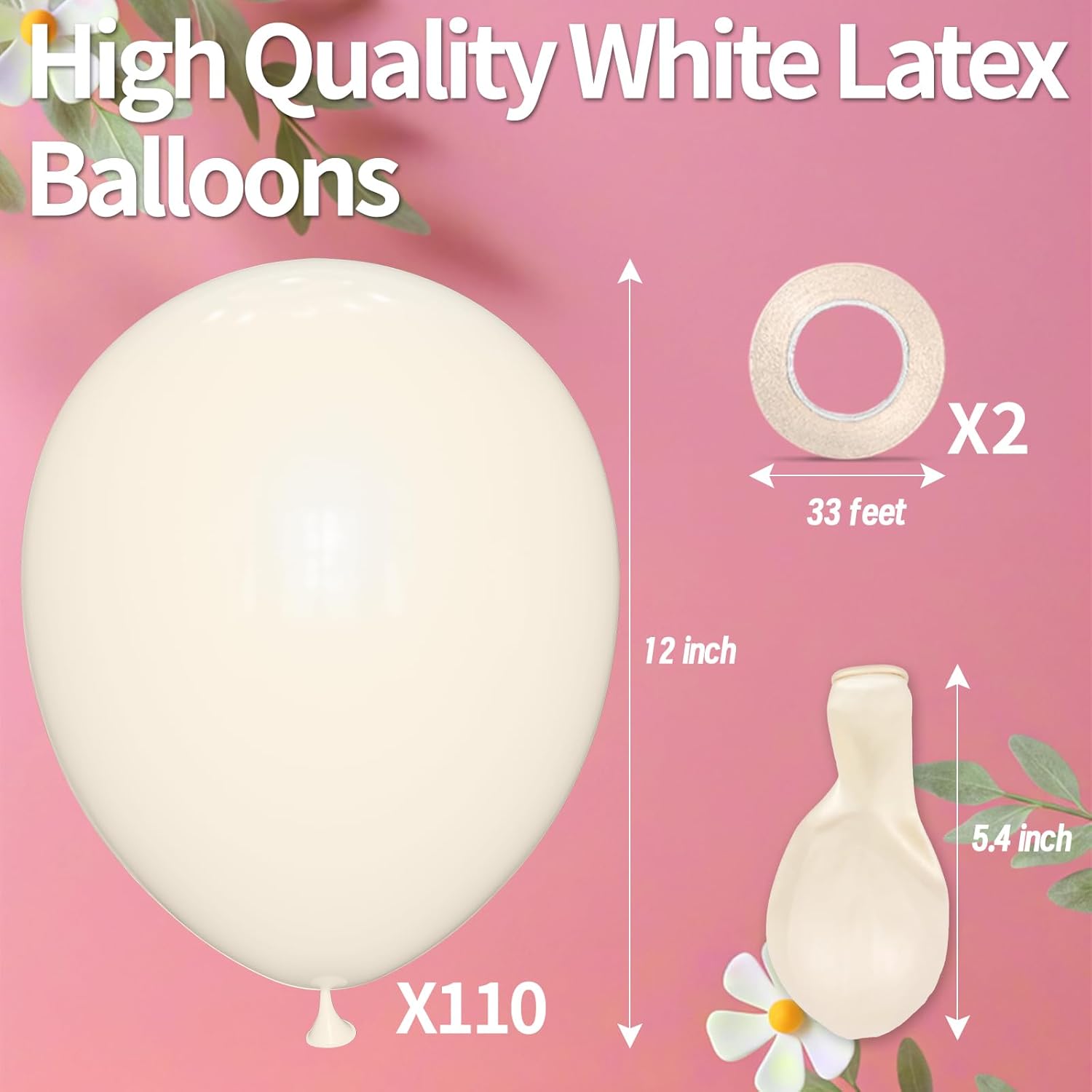 KAWKALSH Sand White Balloon 12 Inch, 110pcs Latex Party Balloons Helium Bright Color for Birthday Baby Shower Wedding Party Supplies Arch Garland Decoration