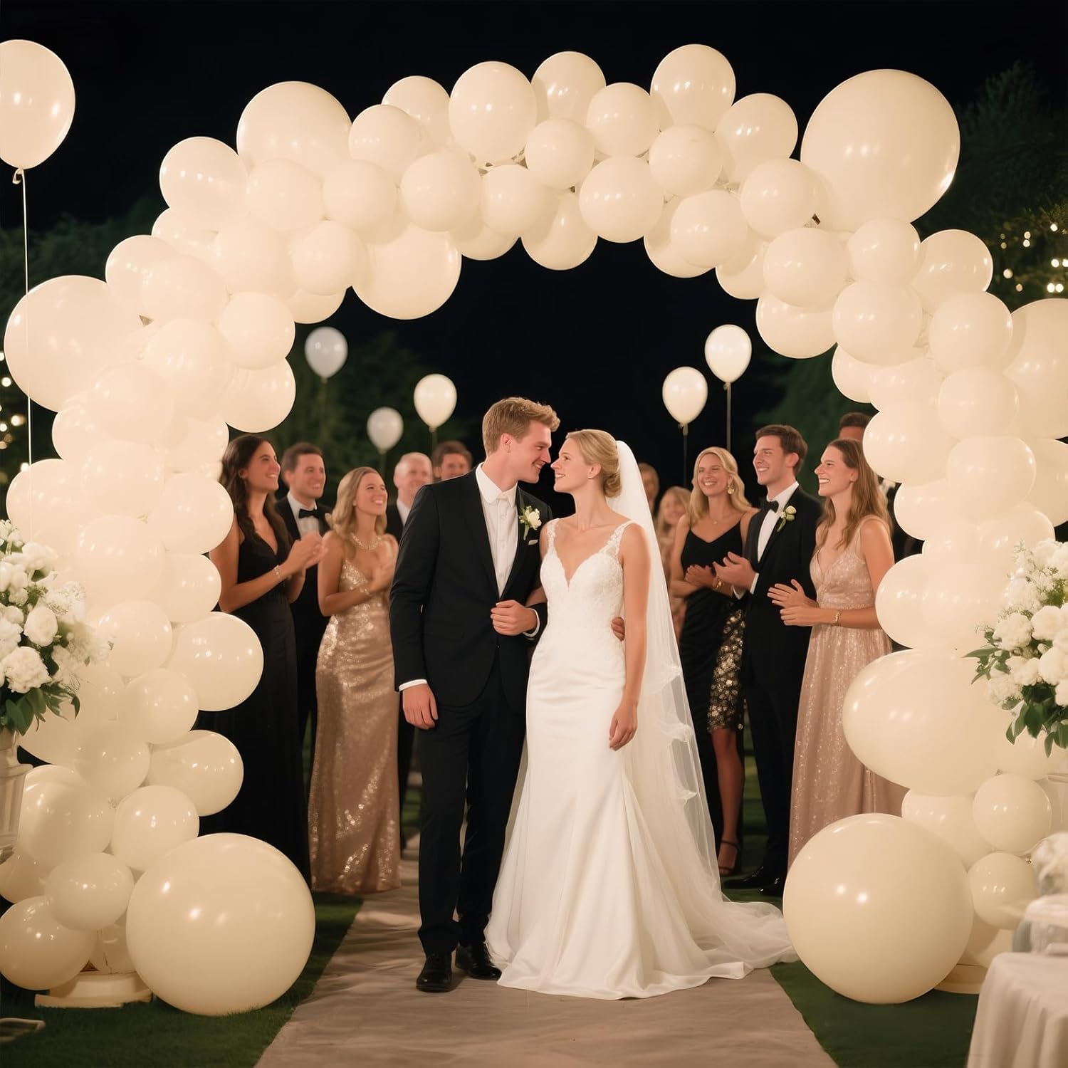 - 110-Count 12" Sand White Latex Balloons: Premium bulk pack of 110 neutral-toned 12-inch balloons—ideal for weddings, minimalist parties, or upscale brand activations with understated elegance.