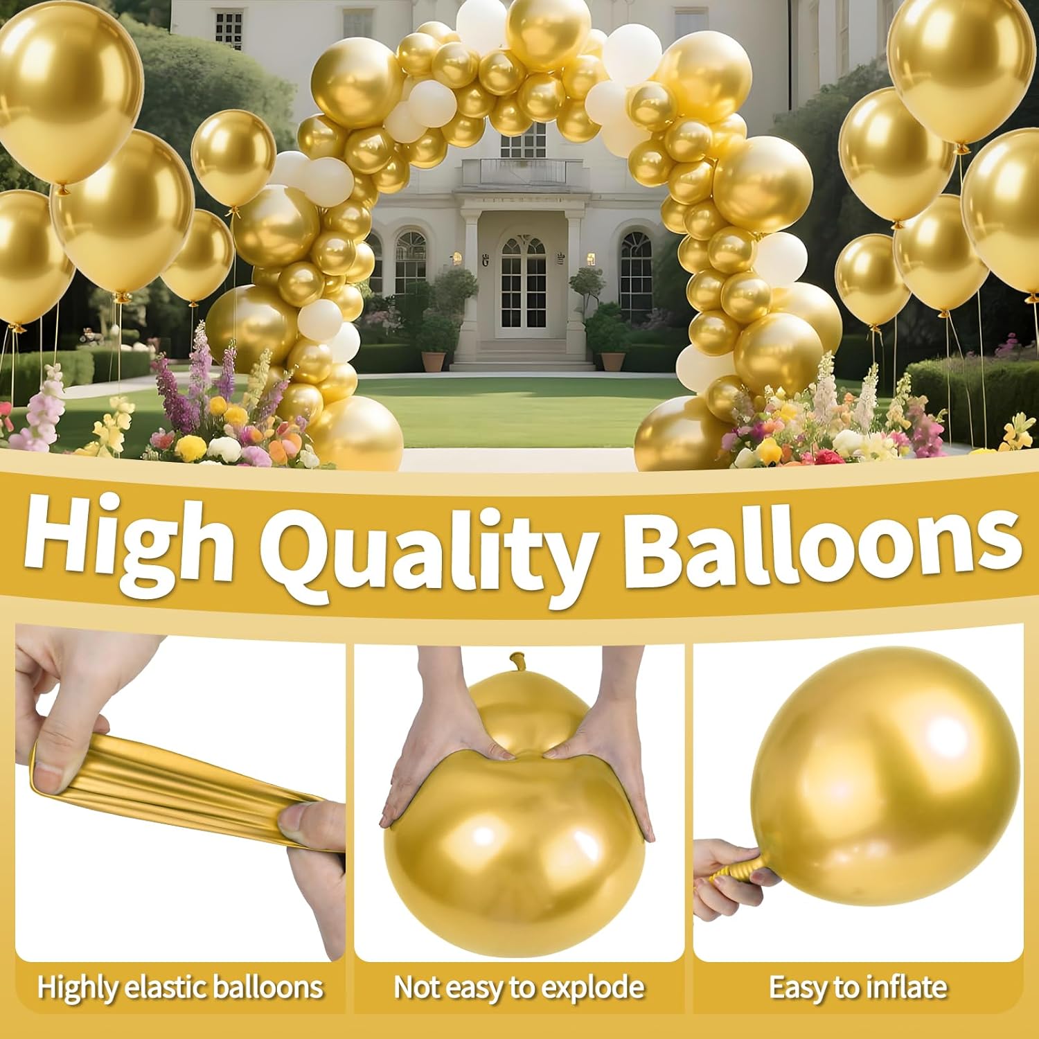 - Quick-Fill Design & Pro-Grade Results: Smooth metallic finish and elastic neck enable rapid inflation (hand pump, electric inflator, or helium) and secure knotting for grand installations.