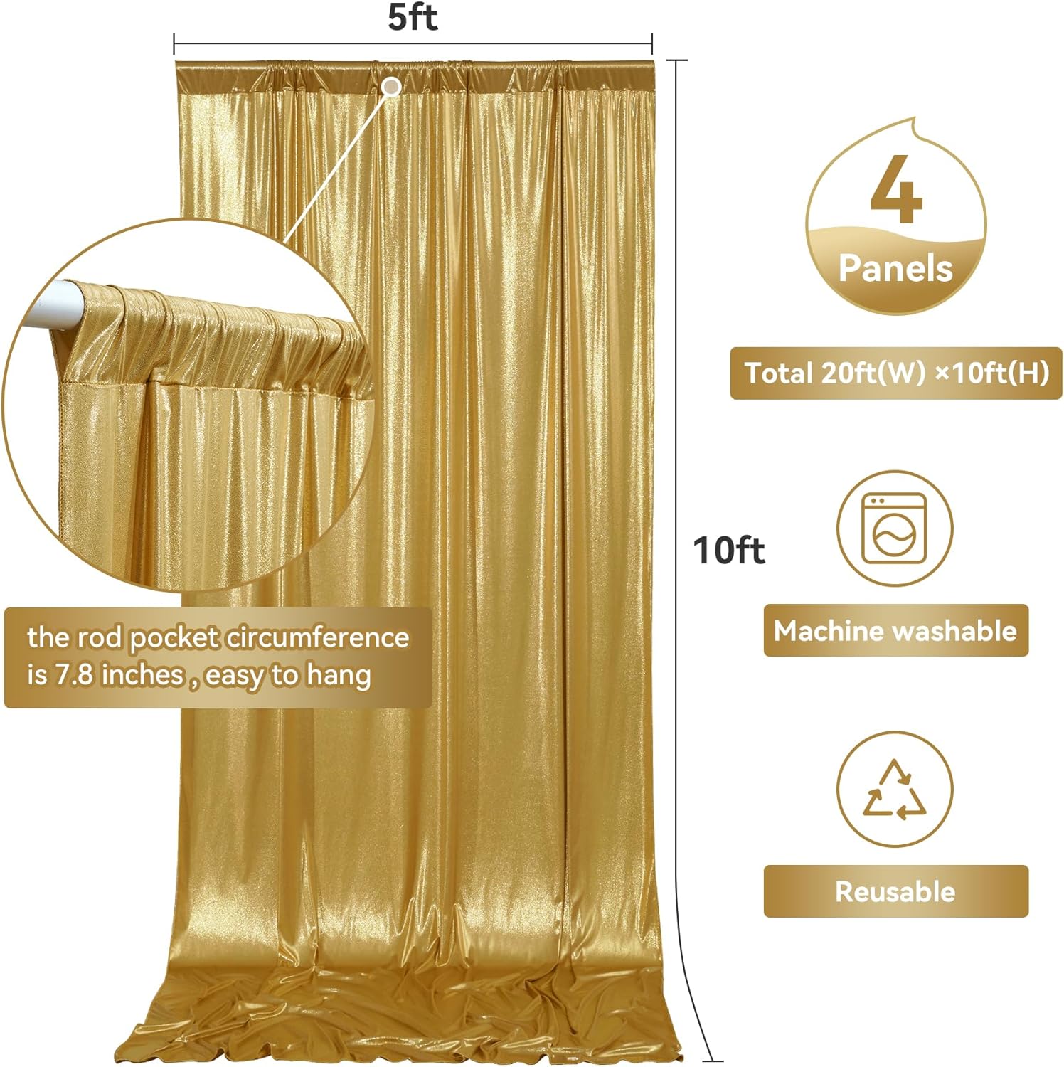 20ftx10ft Gold Sequin Backdrop Curtain for Parties, 4 Panels 5x10FT Shimmer Wrinkle Free Glitter Photo Backdrop Drapes Back Drop Cloth for Wedding Birthday Christmas Photography Background