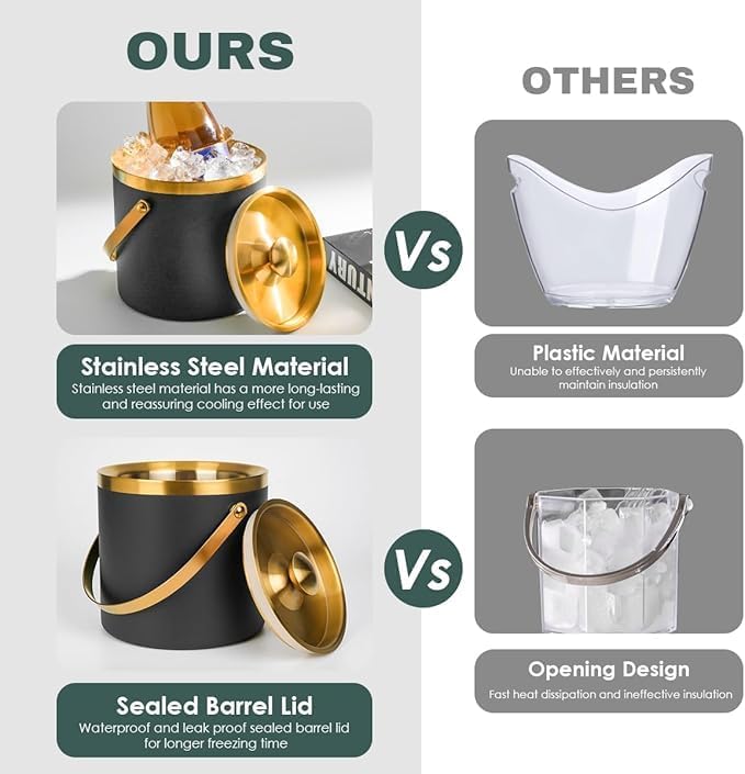 - 5. This insulated stainless steel ice bucket comes with a lid that features silicone sealing for waterproof and leak-proof performance. It can keep ice cubes and cold drinks chilled for an extended period, and it can also be used for food preservation, chilling beer and beverages, and making fruit teas. It's perfect for long outdoor activities or gatherings.