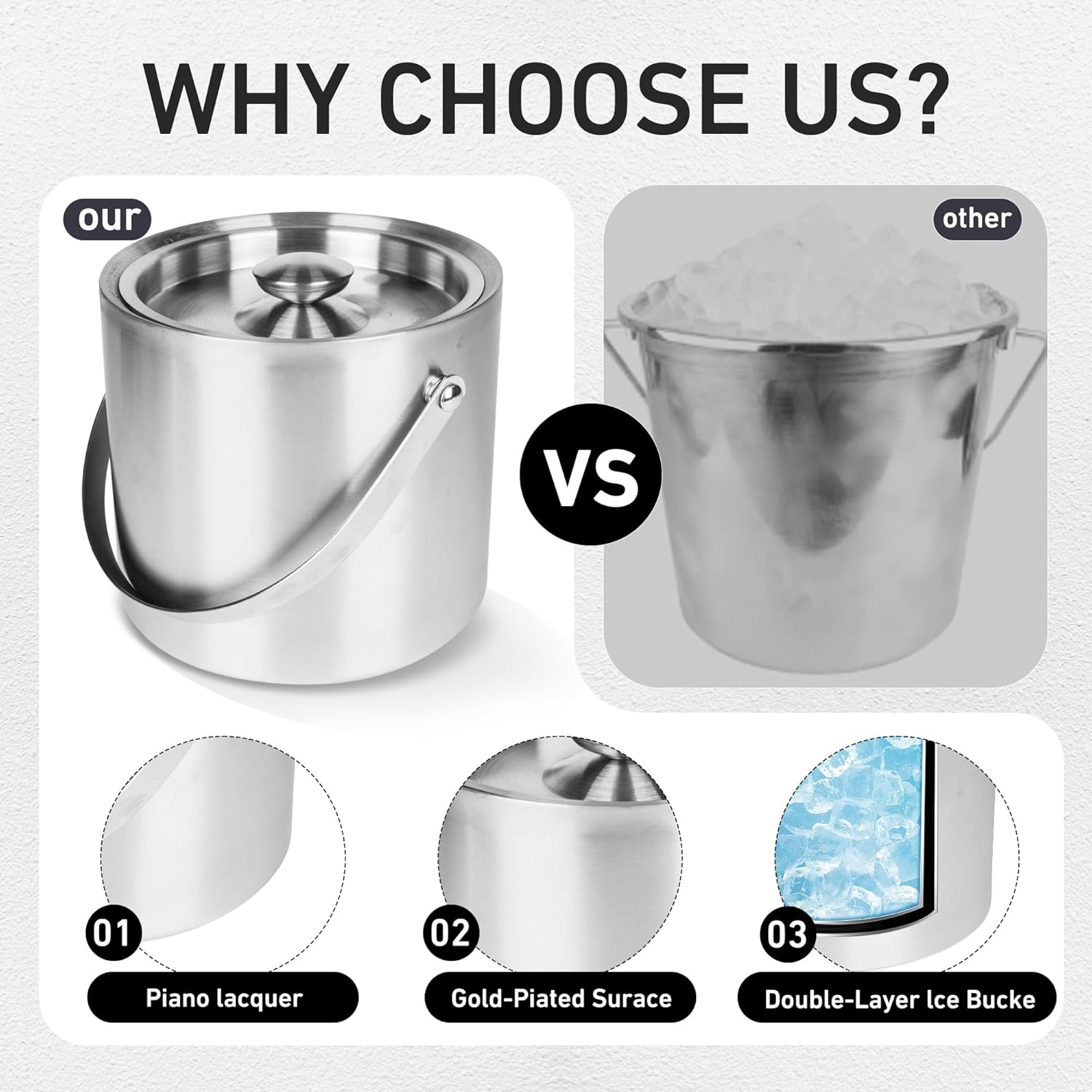- 1. 3-liter extra-large capacity insulated thickened stainless steel ice bucket, capable of holding more beverages. With a wide-mouth design, it's easy to grab and place items, making it perfect for parties.