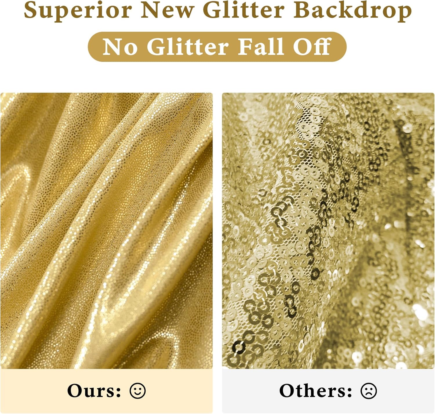 - 10FT Gold Sequin Background Drapes: Wrinkle Free, Durable, Reusable. The gold photography drapes are wrinkle-free, soft touch feeling. You can use them with our another style of backdrop which has kinds of colors for choose.