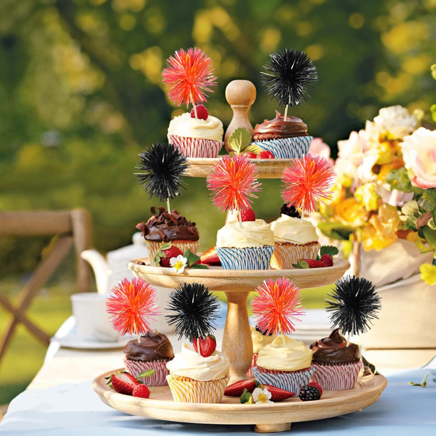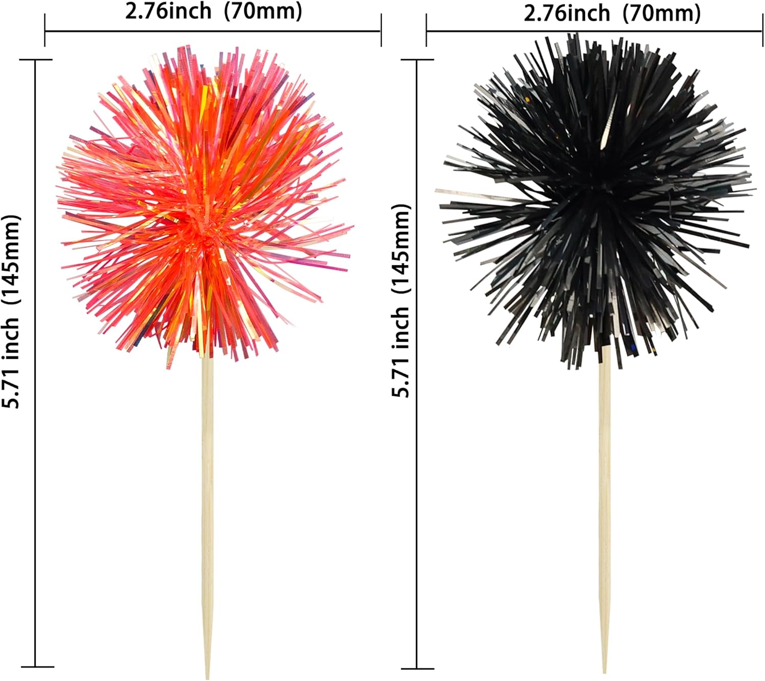 - -Premium Material: These Foil Firework Cupcake Toppers are made of high quality foil and food-grade toothpick, very safe to put them on cakes, cupcakes, ice cream, fruits, pie, dessert, cheese or any dish and food appetizer you want to decorate.