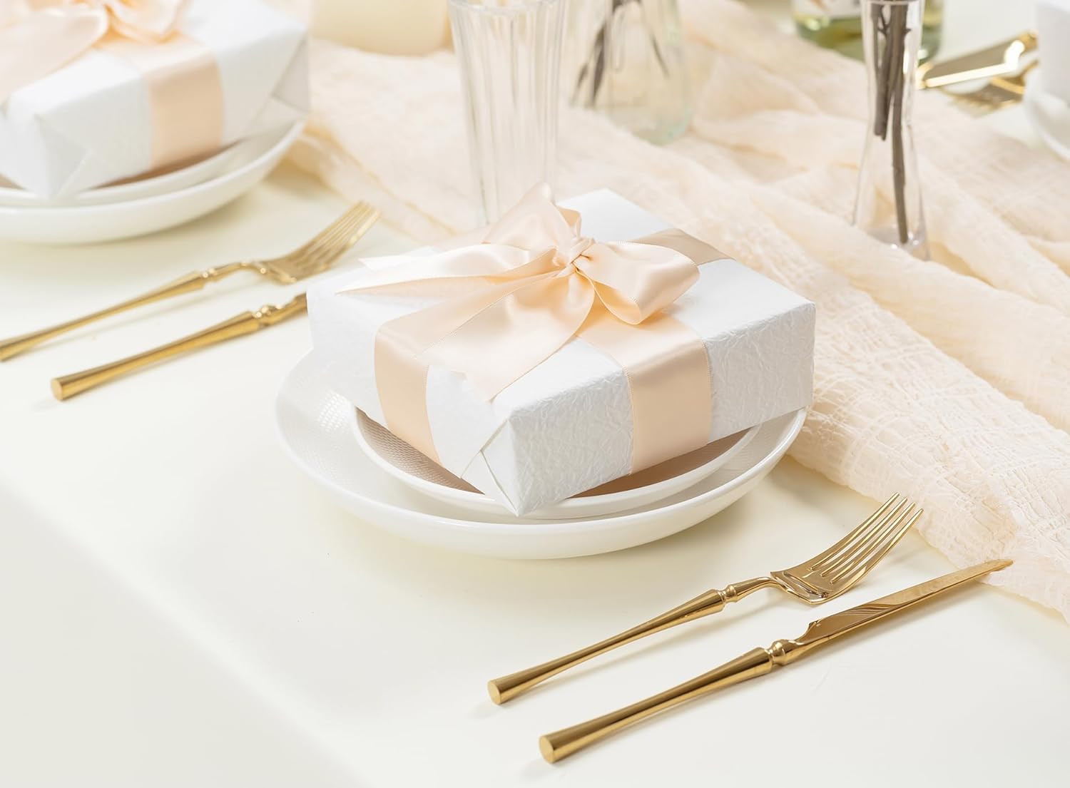 Light Champagne Satin Ribbon 1-1/2 Inch x 50 Yards Double-Faced Polyester Ribbons for Flower Bouquet Gift Wrapping Party Decor Wedding Invitation DIY Craft