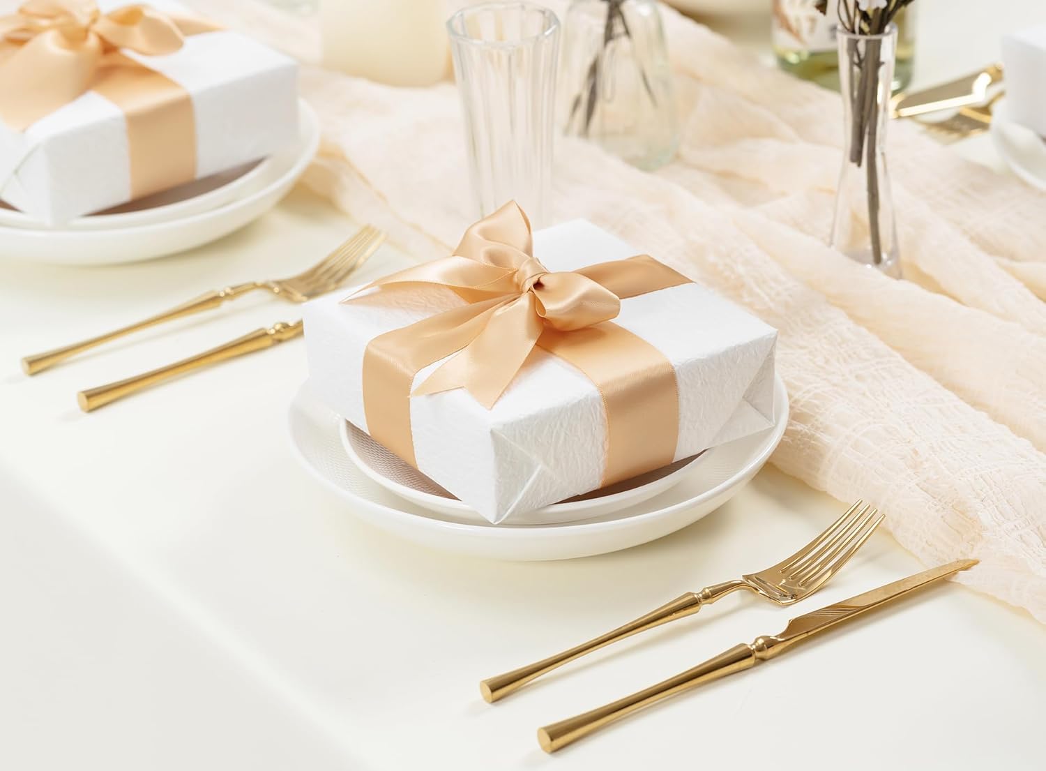 Champagne Satin Ribbon 1-1/2 Inch 50 Yards Double-Faced Polyester Ribbons for Hair Bows Gift Wrapping Crafts Floral Bouquet Wedding Invitations