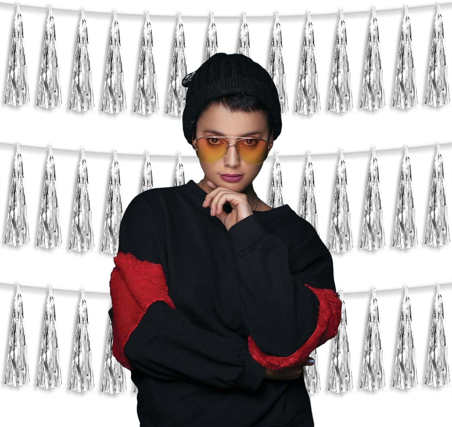 3P Metallic Fringe Tassel Banner Garland Foil Tinsel Streamer Wall Hanging Curtain Backdrop Banners for Parade Floats,Graduation Decorations, Christmas, Wedding Party Decoration(Silver)