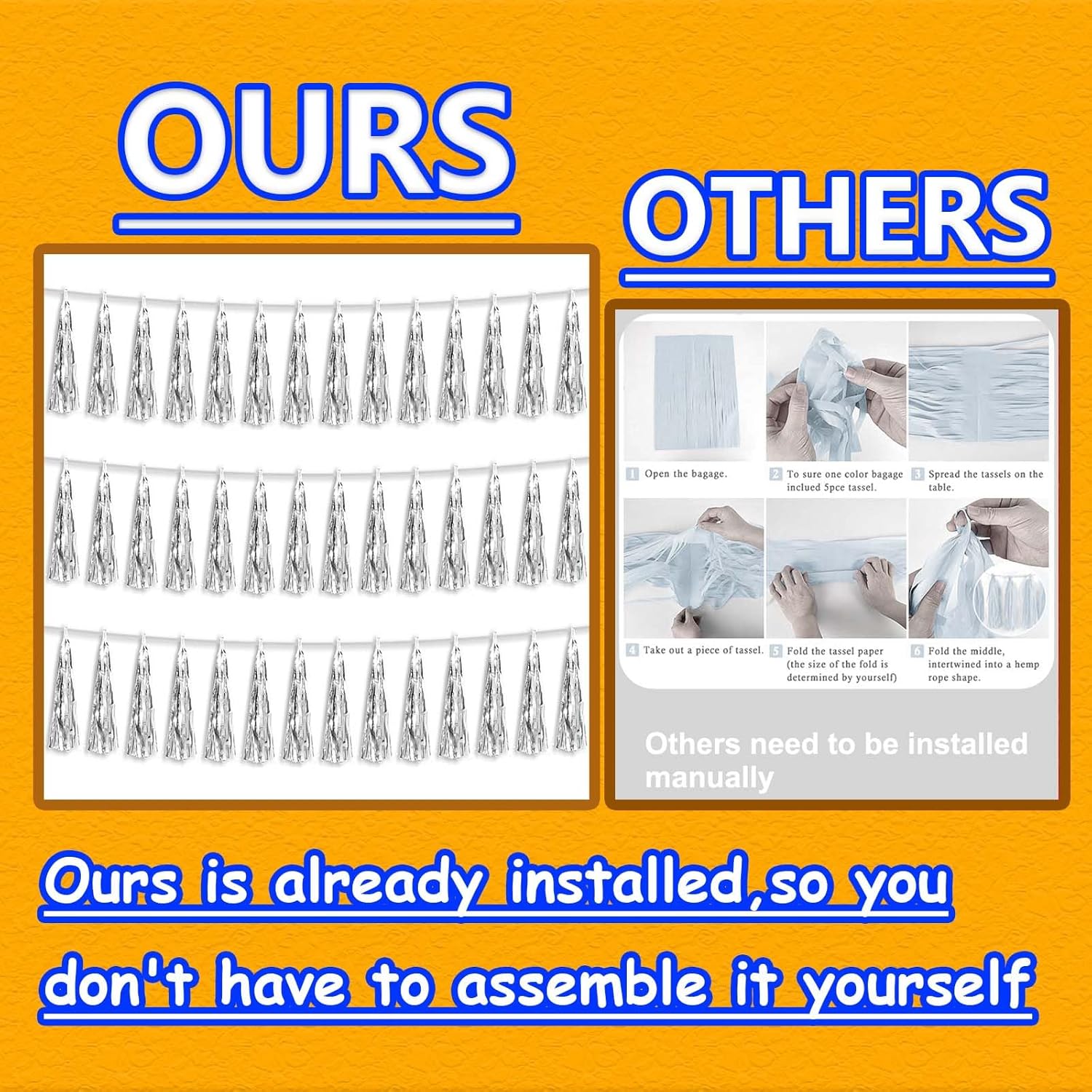 - 【Package Includes】The total length of the silver birthday tassels banner is 30 feet, divided into 3 strips, each 10 feet long. Each banner contains 15 tassels, and each tassel measures 14 inches, for birthday decorations many occasions uitable for Patriotic display, Homecoming Float, Christmas Float, ecorative metal trailers, graduation floats etc