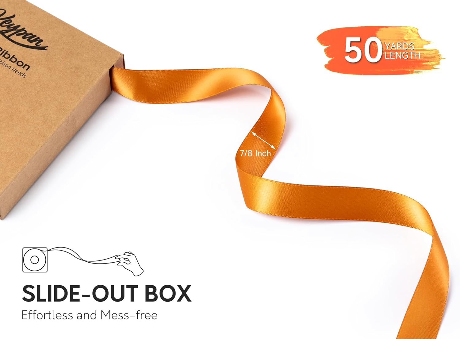 Satin Ribbon 7/8 Inch x 50 Yards Ginger Double-Faced Polyester Ribbons for Crafts Flower Bouquet Gift Wrapping Wedding Invitation