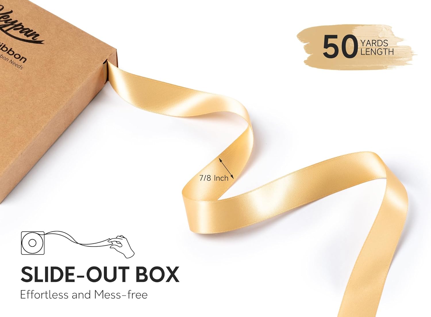 Champagne Satin Ribbon 7/8 Inch 50 Yards Double-Faced Polyester Ribbons for Hair Bows Gift Wrapping Crafts Floral Bouquet Wedding Invitations