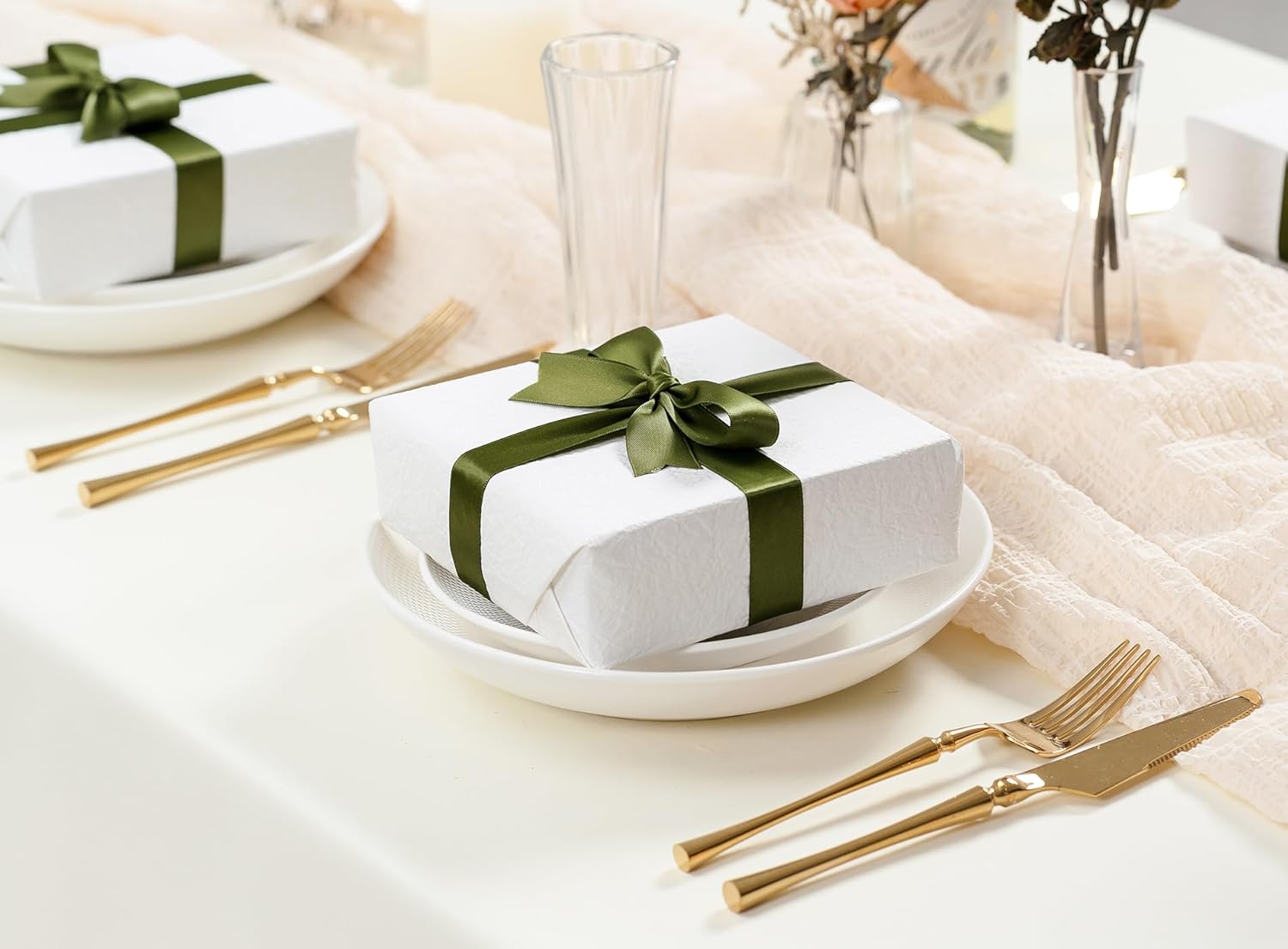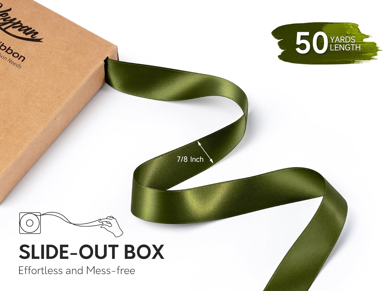 Moss Green Satin Ribbon 7/8 Inch x 50 Yards Double-Faced for Gift Wrapping Crafts Flower Bouquet Invitations Holiday Decorating
