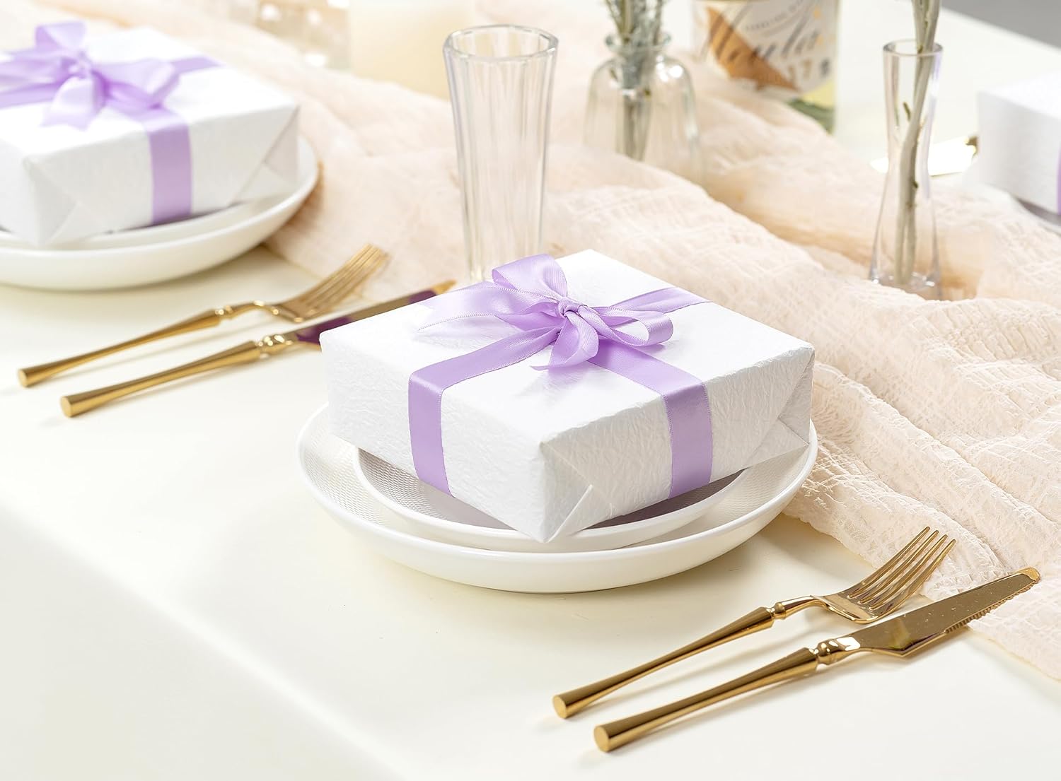 Lavender Satin Ribbon 7/8 Inch x 50 Yards Double-Faced Ribbons for Gift Wrapping Crafts Flower Bouquet Wedding Paper Bows Invitations
