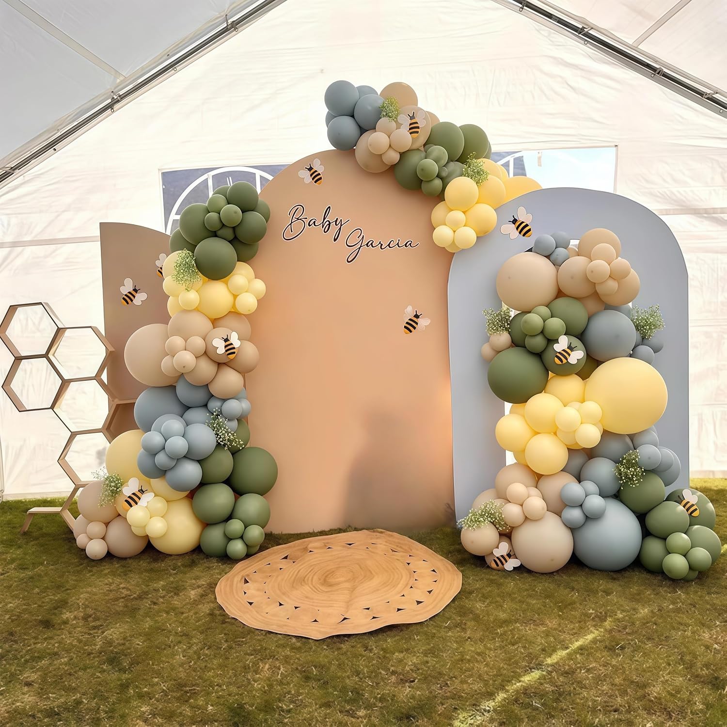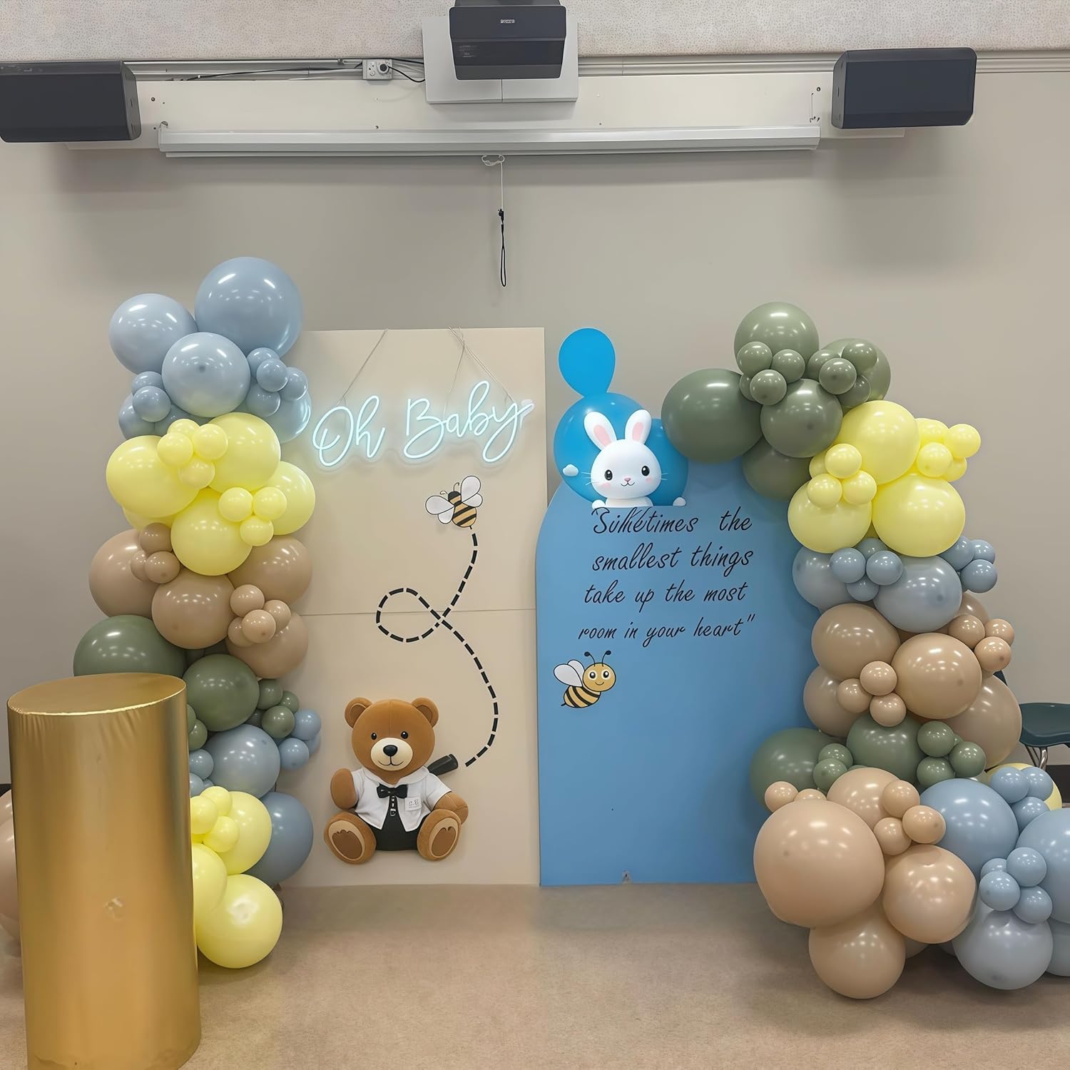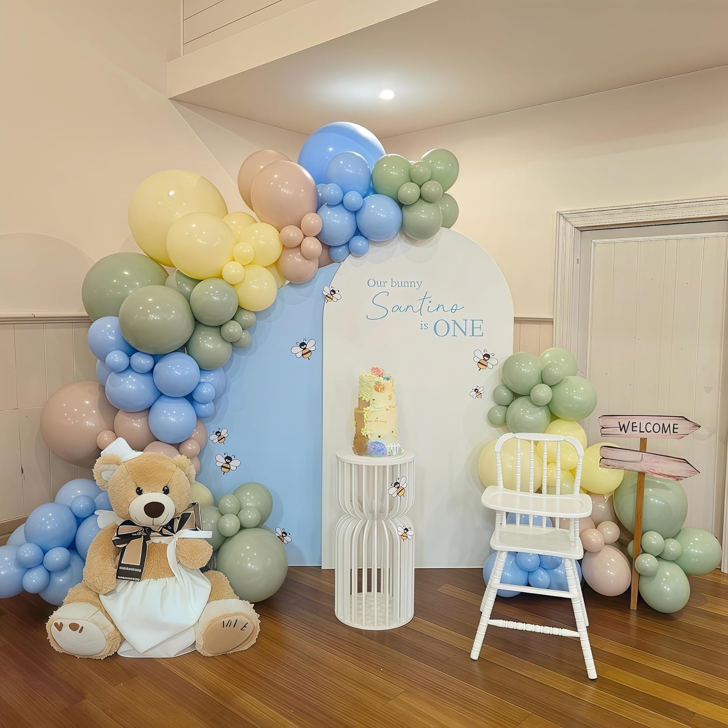 Sage Green Dusty Blue Yellow Balloons Set, 60Pcs 12 Inch Olive Green Macaron Yellow Slate Blue White Sand Cream Latex Balloons for Birthday Wedding Baby Shower Wild One Party Deocrations Supplies