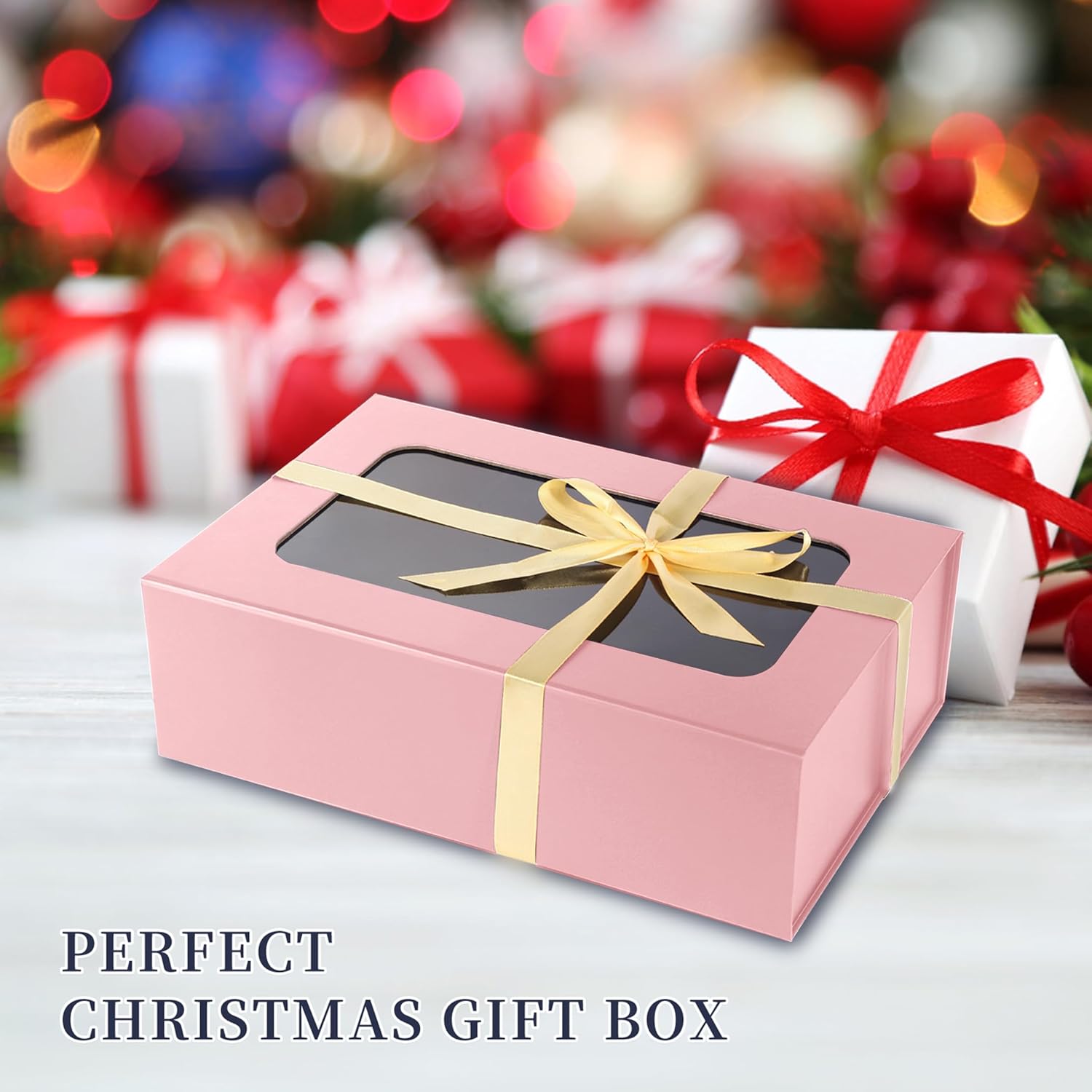 Pink Large Gift Boxes with Window, 13.5"x9"x4.3" Bridesmaid Boxe for Gift Giving,Birthday Gift Box with Magnetic,Closure Lid Gift Boxes for Presents,Cute Boxe,Luxury for Gift Packaging,Gift Box for Wrapping Gifts