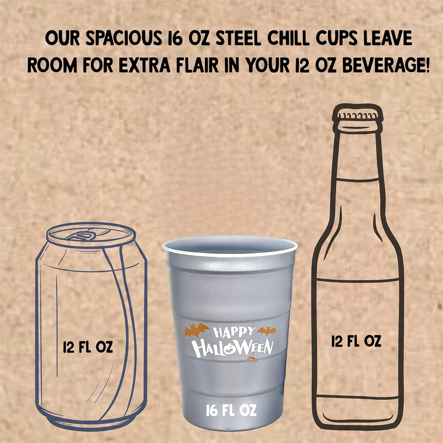- Earth-Friendly Drinkware: Unlike plastic party cups that end up in landfills, sustainable Halloween Steel Chill Cups are 100% recyclable; reuse hand-washable cups for your corporate event