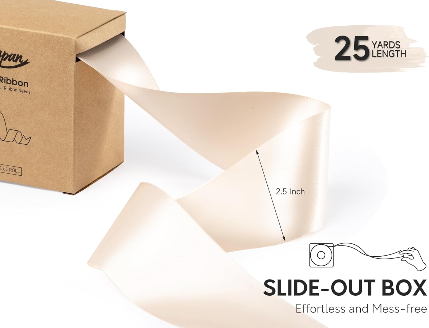 Light Champagne Satin Ribbon 2.5 Inch Double-Faced Polyester 25 Yards Ribbons for Flower Bouquet Gift Wrapping Party Decor Wedding Invitation DIY Craft