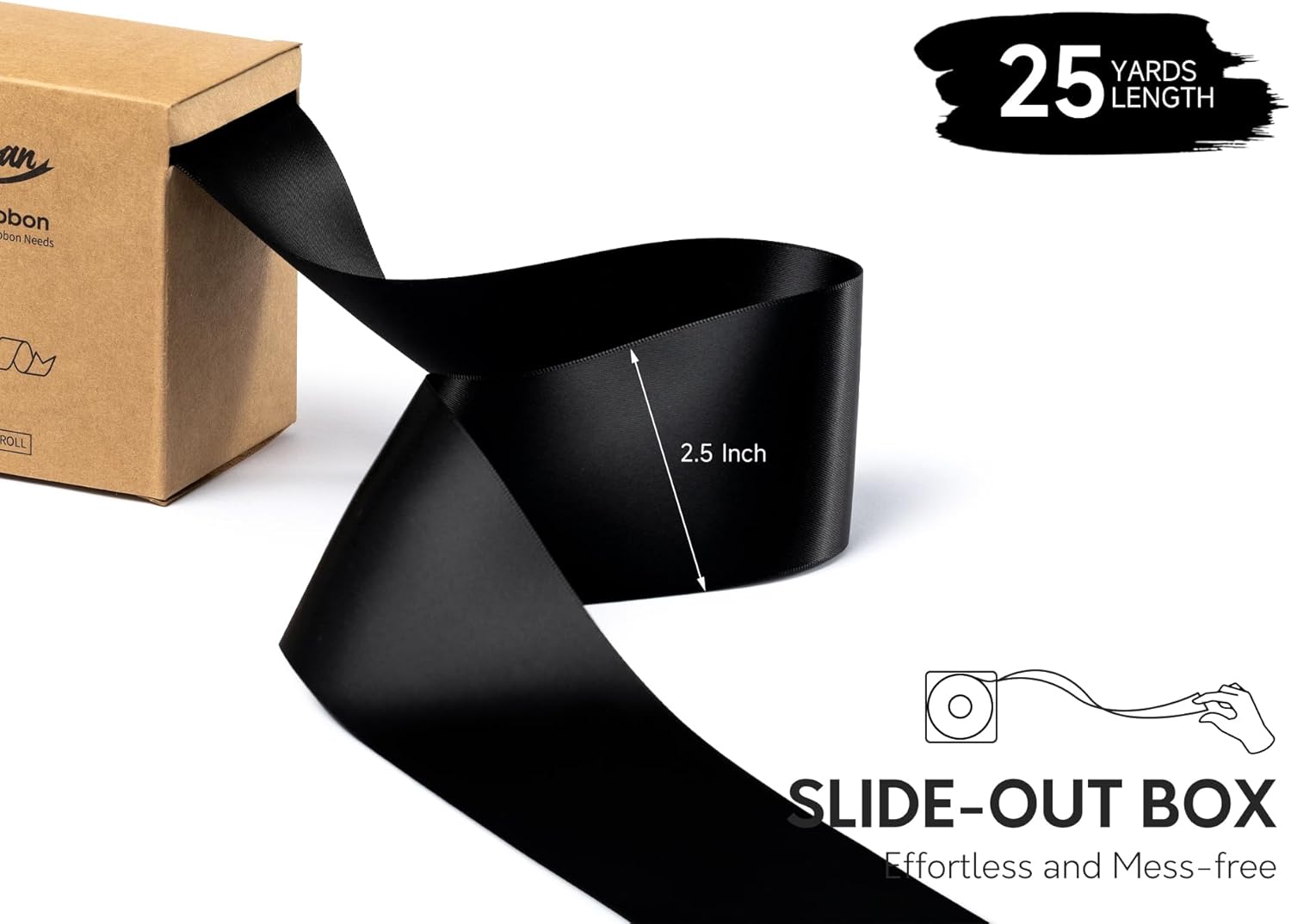 Black Satin Ribbon 2.5 Inch Double-Faced Wide Ribbon 25 Yards for Gift Wrapping Crafts Flower Bouquet Invitations Holiday Decorating
