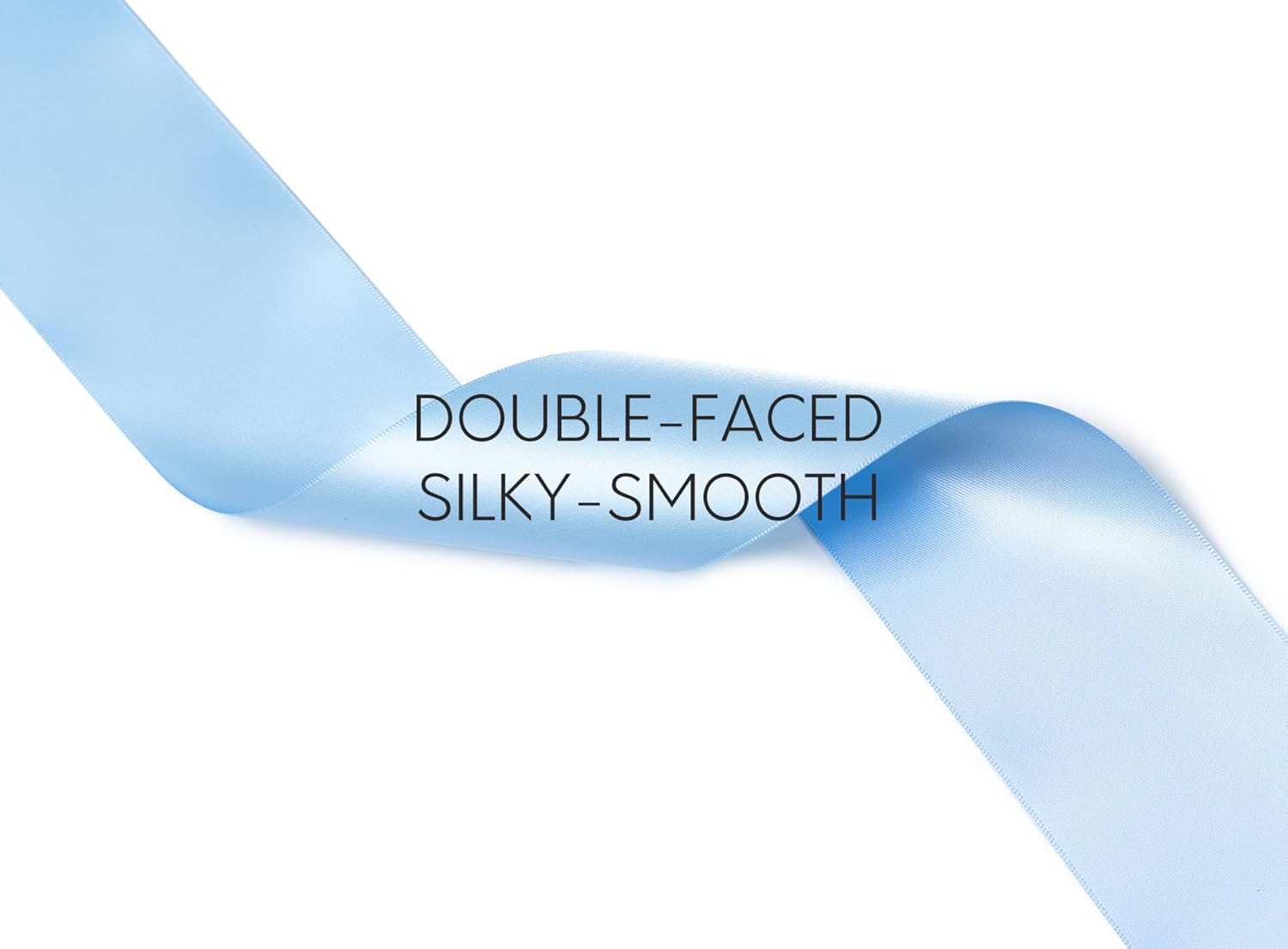 Baby Blue Satin Ribbon 2.5 Inch Double-Faced Ribbons 25 Yards for Gift Wrapping Flower Bouquet Wedding Paper Bows Invitations Crafts