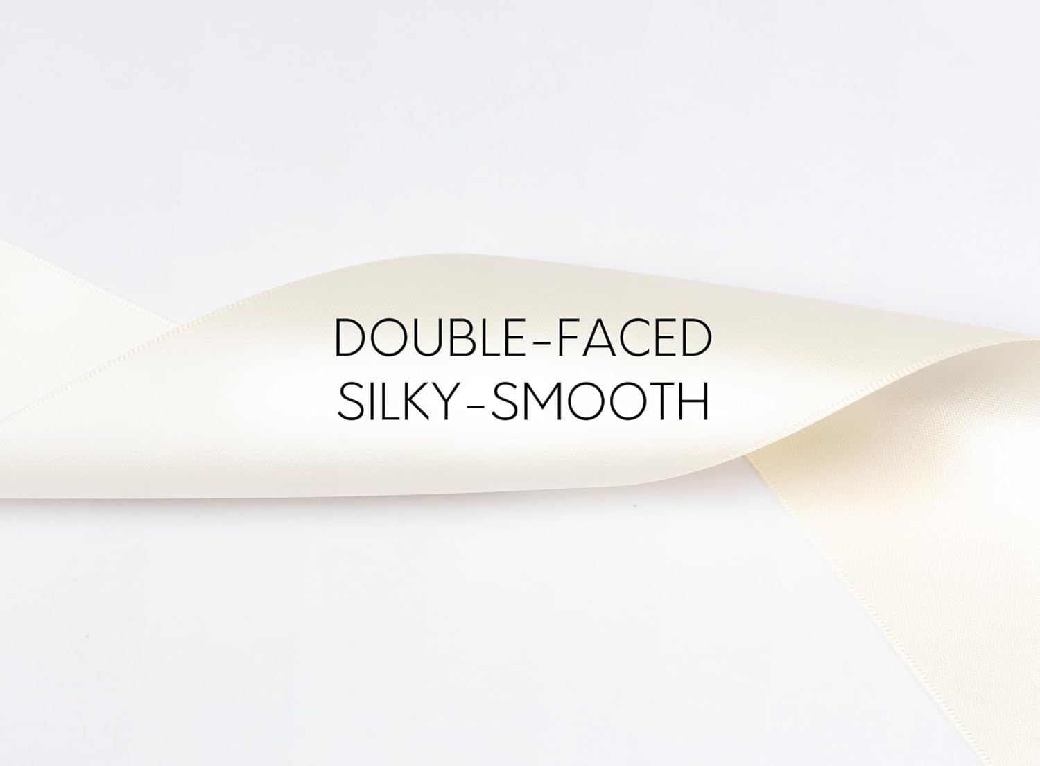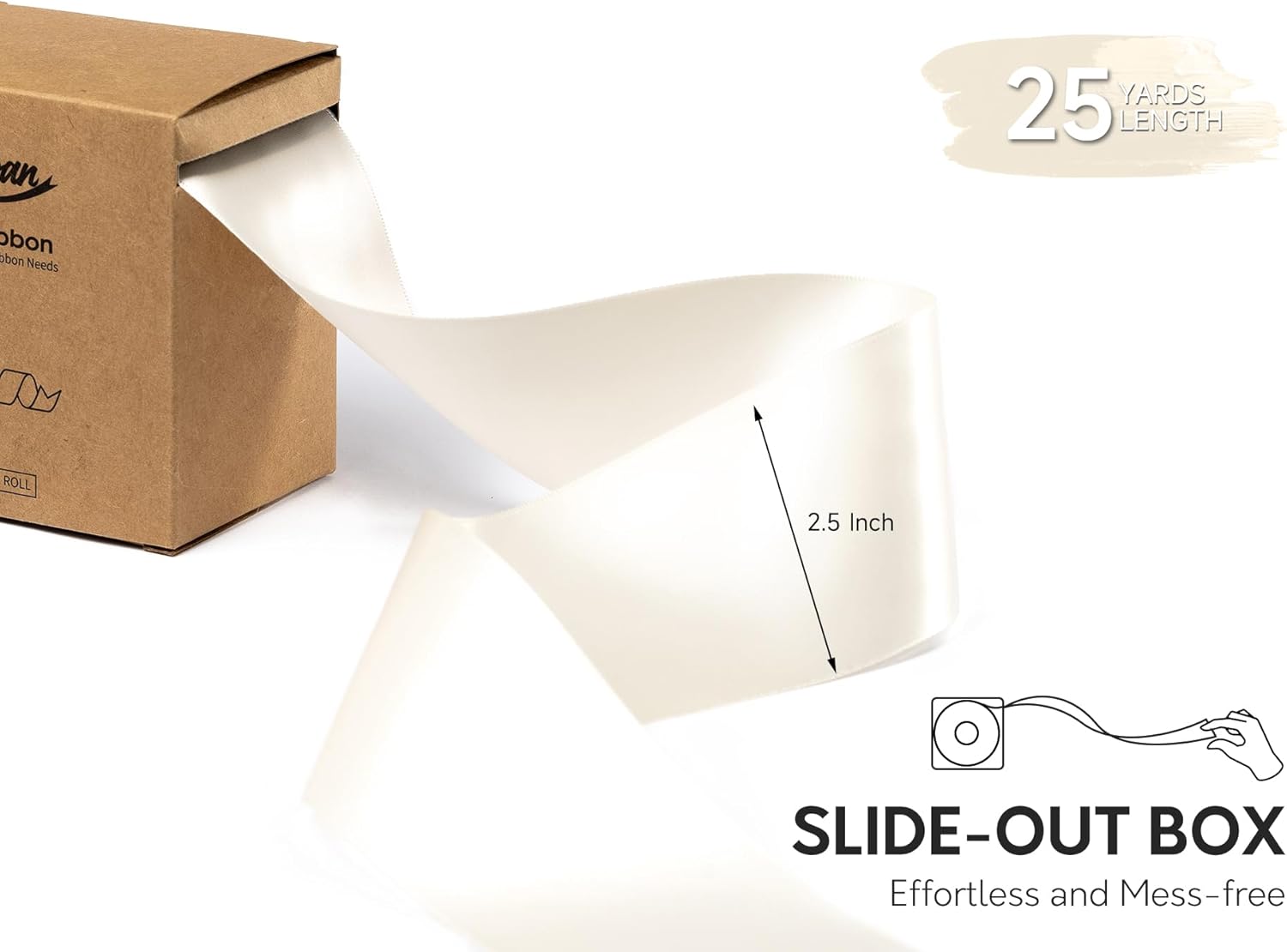 Ivory Satin Ribbon 2.5 Inch Double-Faced Polyester Cream Ribbons 25 Yards for Christmas Gift Bows Crafts Floral Bouquet Wedding Invitations