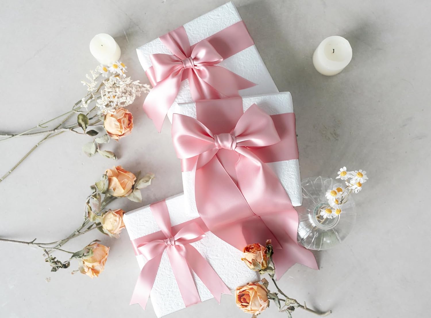 Pink Satin Ribbon 2.5 Inch Double-Faced Valentines Ribbons for Flower Bouquet Gift Wrapping Party Decor Wedding Invitation DIY Craft, 25 Yards
