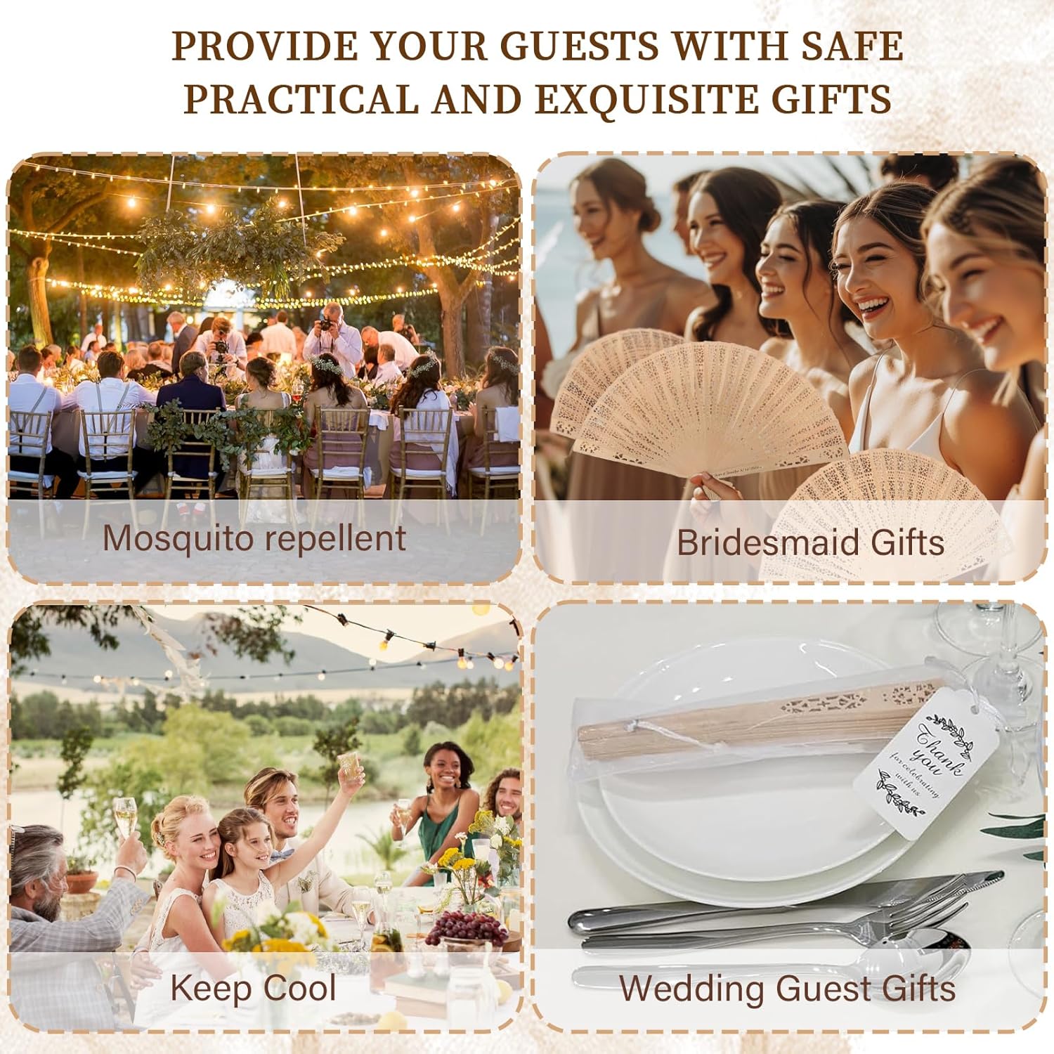 - PERFECT GUEST FAVORS: Lightweight, foldable, and beautiful, our wedding fans keep guests cool and comfortable during outdoor ceremonies, beach weddings, or summer receptions
