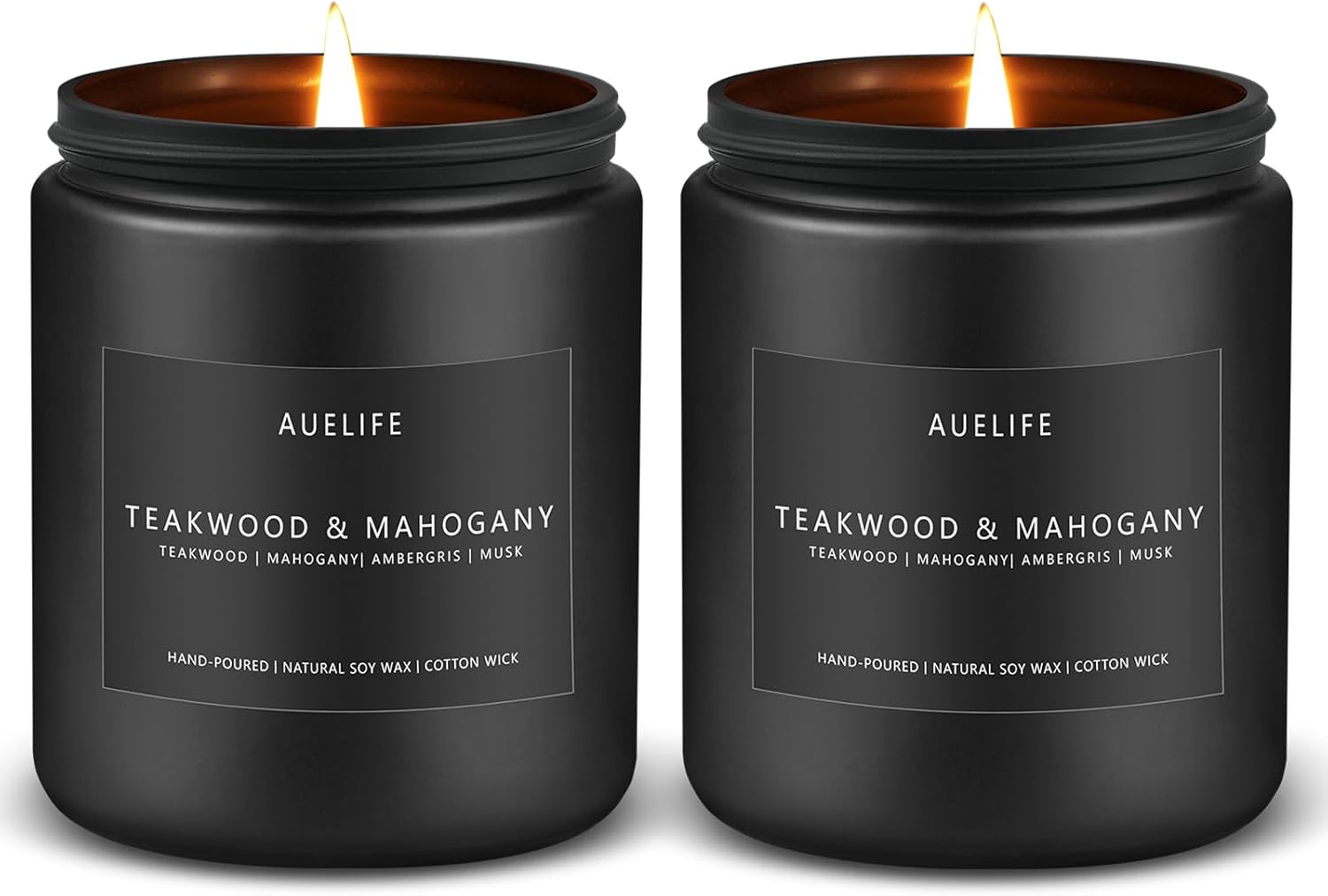2 Pack Teakwood & Mahogany Candle | Scented Candles for Men, Man Gifts for Men - Masculine Candles - Soy Candle for Home Scented - 7oz Black Jar, Long Lasting