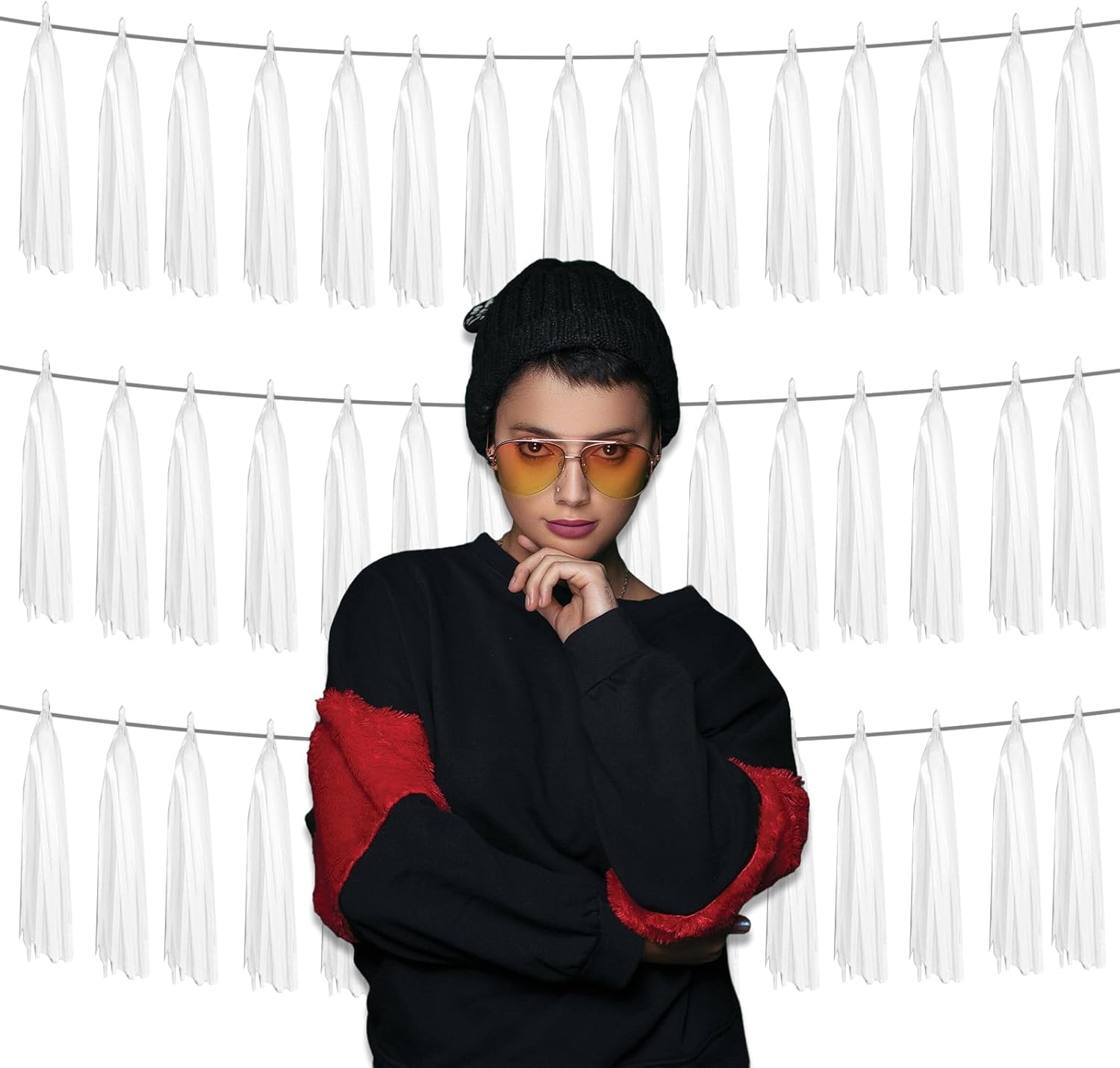 - 【Package Includes】The total length of the white birthday tassels banner is 30 feet, divided into 3 strips, each 10 feet long. Each banner contains 15 tassels, and each tassel measures 14 inches, for birthday decorations many occasions uitable for Patriotic display, Homecoming Float, Christmas Float, ecorative metal trailers, graduation floats etc