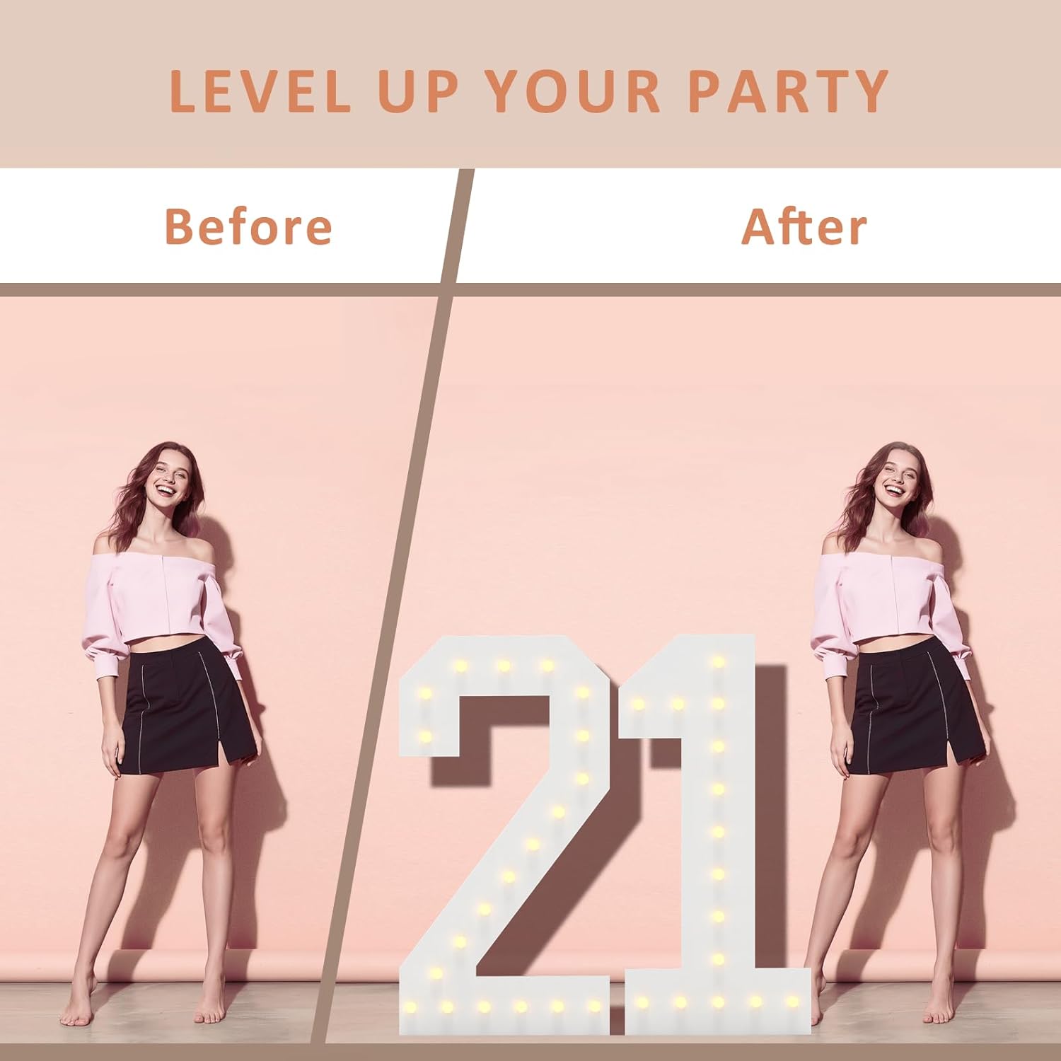 - Perfect Party Backdrop: Our latest marquee numbers light up numbers can be placed on ground steadily with back stands. Put weight on the bottom stands to reinforce for ground display. LED marquee number with simple design can complement any party theme
